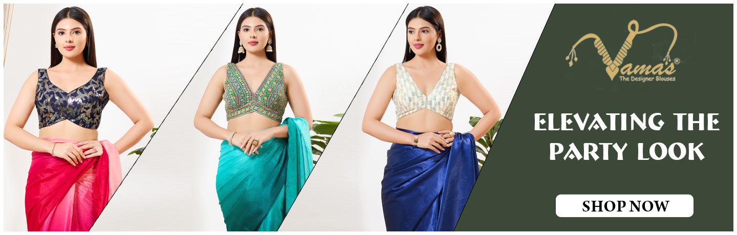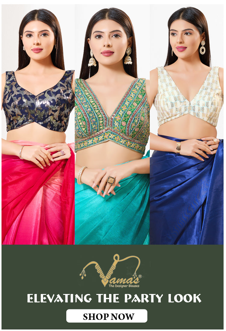 Vamas Women's Tissue Padded Front Open Elbow Sleeves Saree Blouse ( X-1268.ELB )
