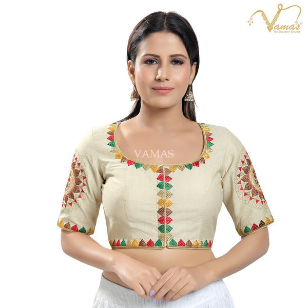 Vamas Women's Khadi Padded Front Open Elbow Sleeves Saree Blouse ( KP-252.ELB )