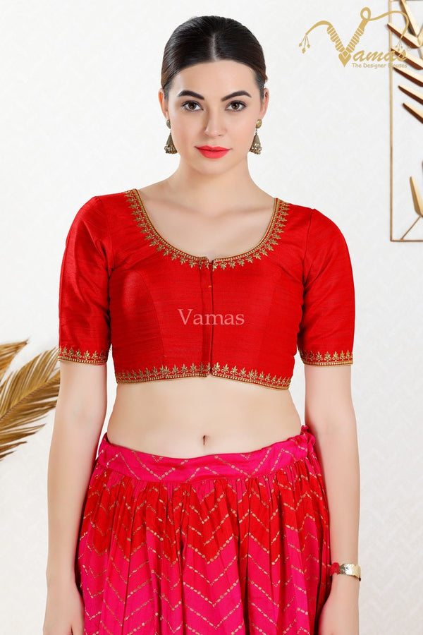 Vamas Women's Silk Padded Back Open Elbow Sleeves Saree Blouse ( VFJ-140 )