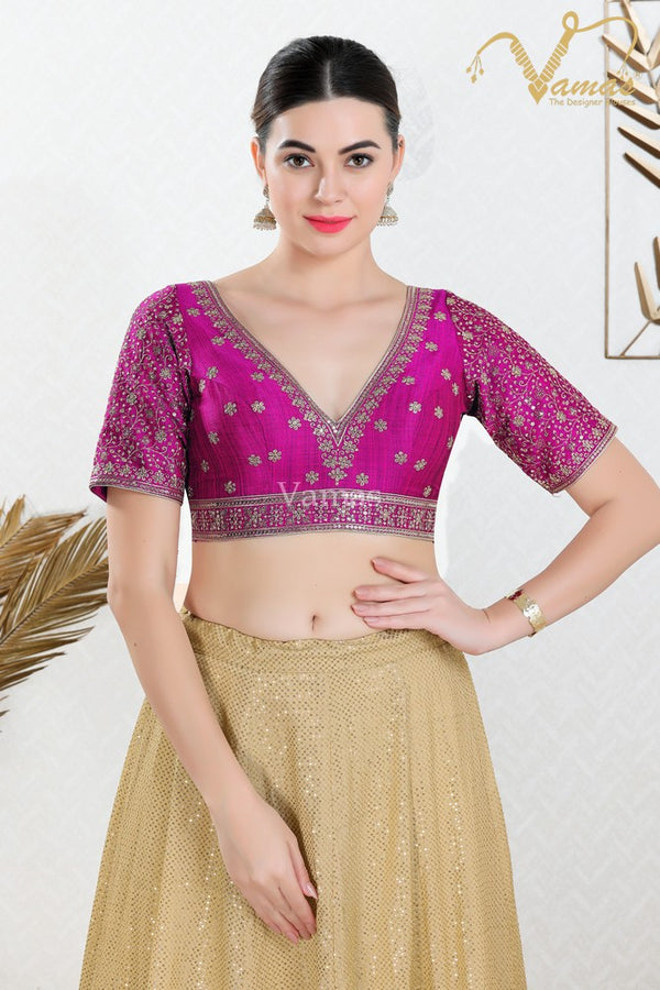 Vamas Women's Silk Padded Back Open Elbow Sleeves Saree Blouse ( B-139.ELB )