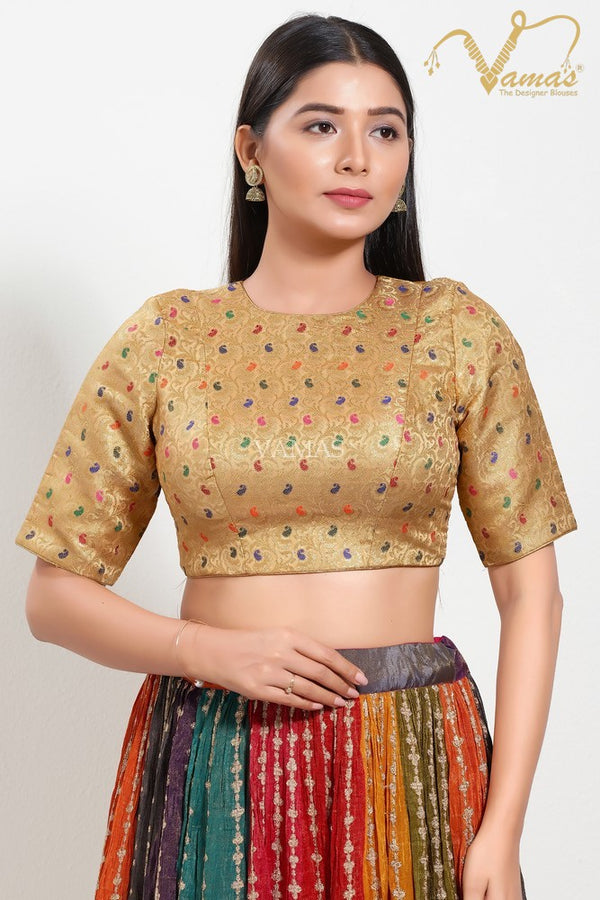 Vamas Women's Brocade Padded Back Open Elbow Sleeves Saree Blouse ( B-242.ELB )