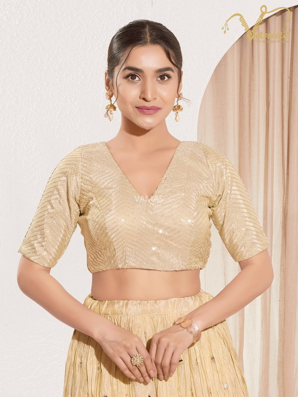 Vamas Women's Shimmer Padded Front Open Elbow Sleeves Saree Blouse ( X-1223.ELB )