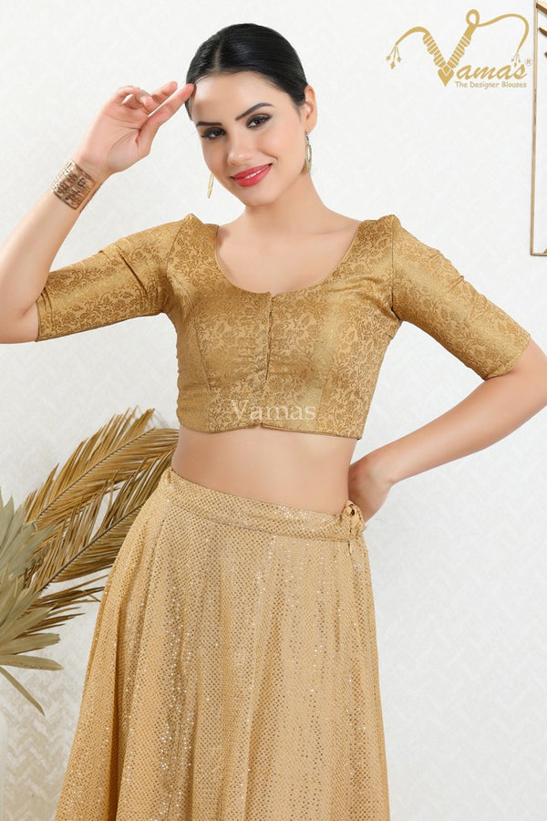 Vamas Women's Jacquard Non-Padded Stretchable Elbow Sleeves Saree Blouse, This is a fully stitched stretchable lycra blead blouse/ crop top., Size Tip: With Stretchable Fabric, M works well for size...