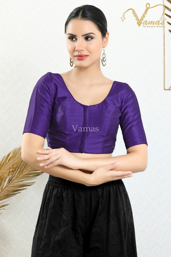 Vamas Women's Silk Padded Back Open Elbow Sleeves Saree Blouse, This Is A Fully Stitched Ready-Made Padded Saree Blouse With Elbow Sleeves, Size Tip: We recommend buying a size bigger...