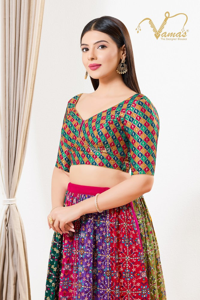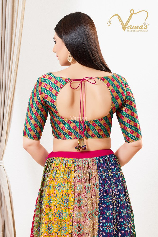 Vamas Women's Brocade Padded Back Open Elbow Sleeves Saree Blouse, This Is A Fully Stitched Ready-Made Padded Saree Blouse With Elbow Sleeves, Size Tip: We recommend buying a size bigger than your actual inner garment size (If your size is 32, then go for 34), 3 Openable Margin Stitches Of Approx. 2 Inches Available On Both Sides For Any Future Alterations, Care Instruction : Dry Clean Only.