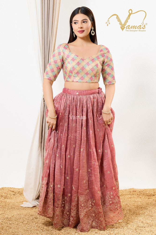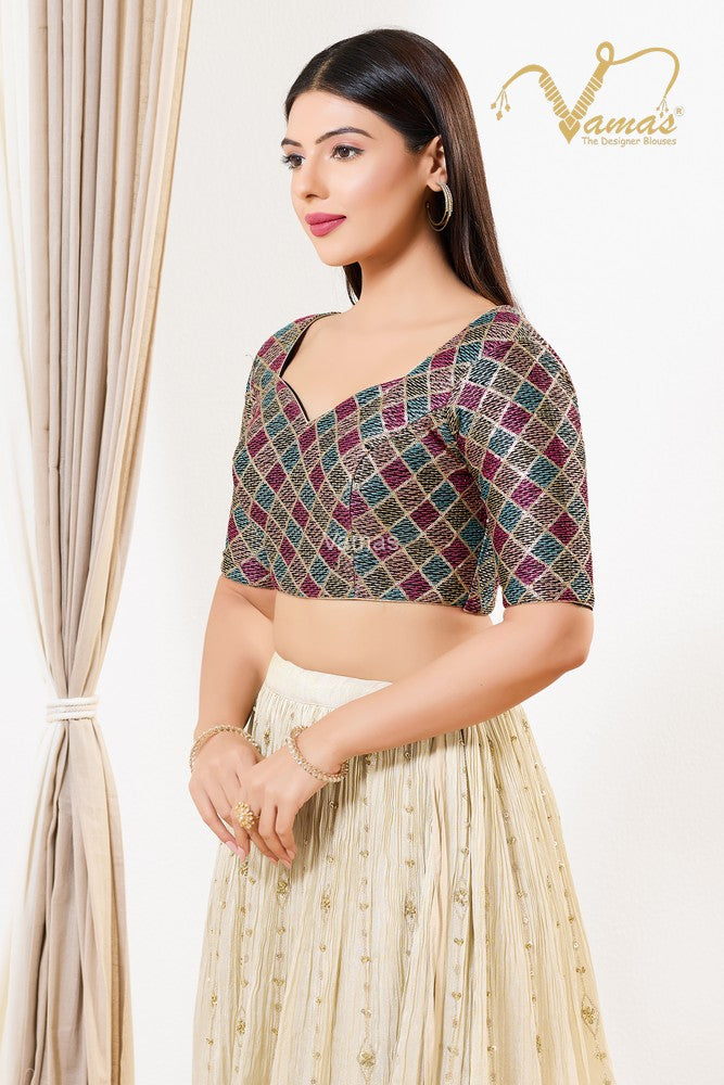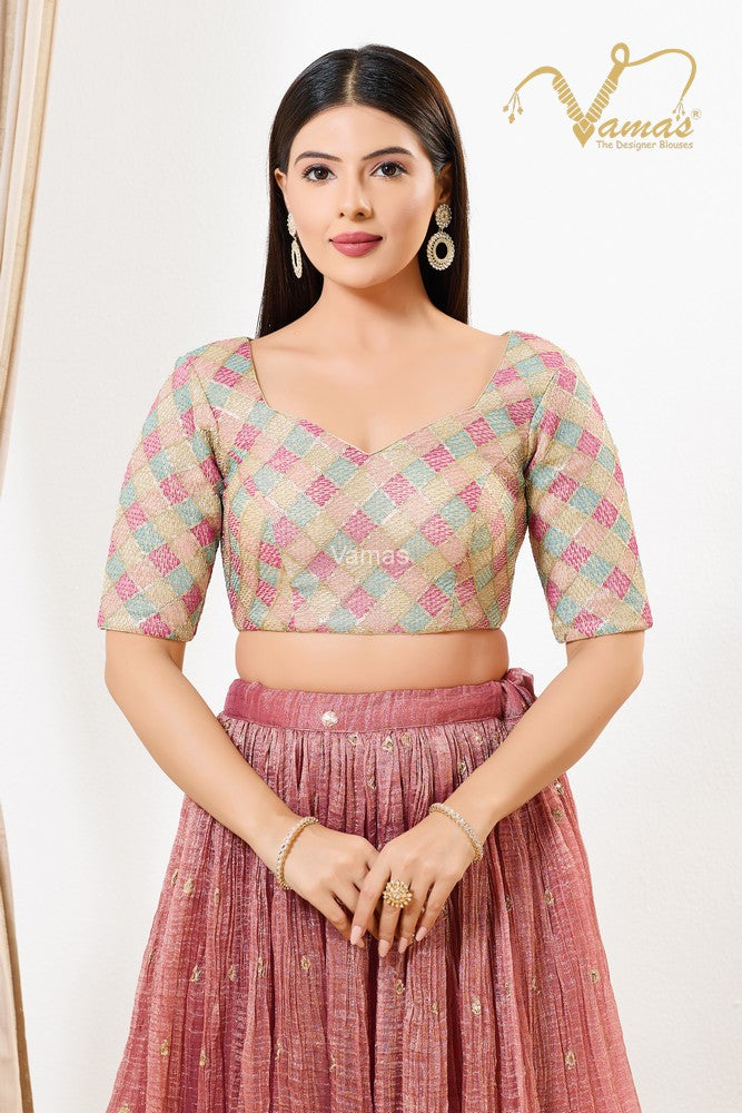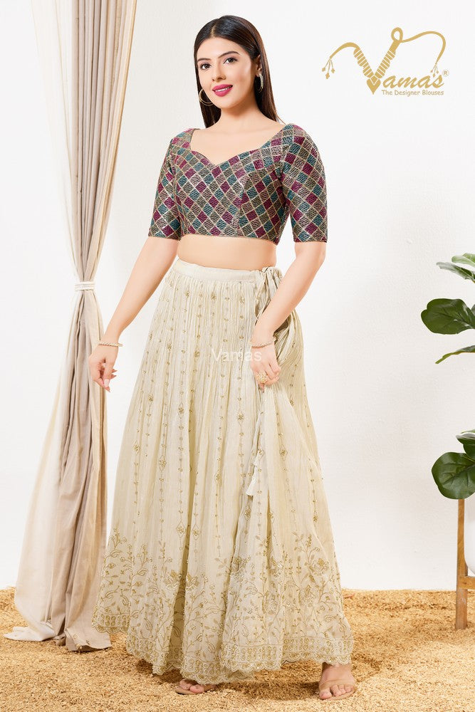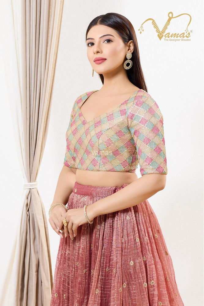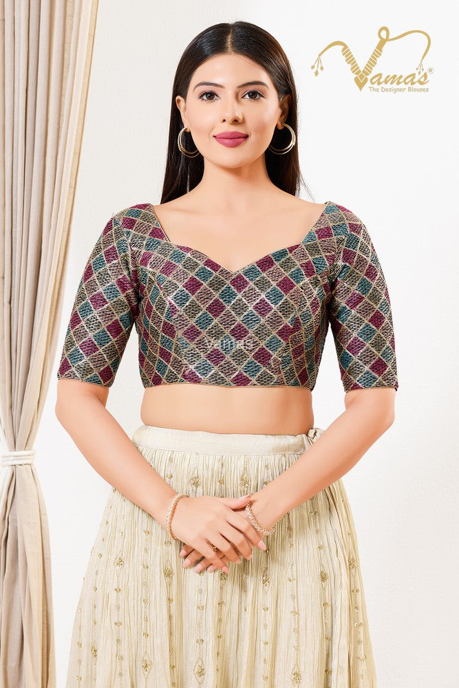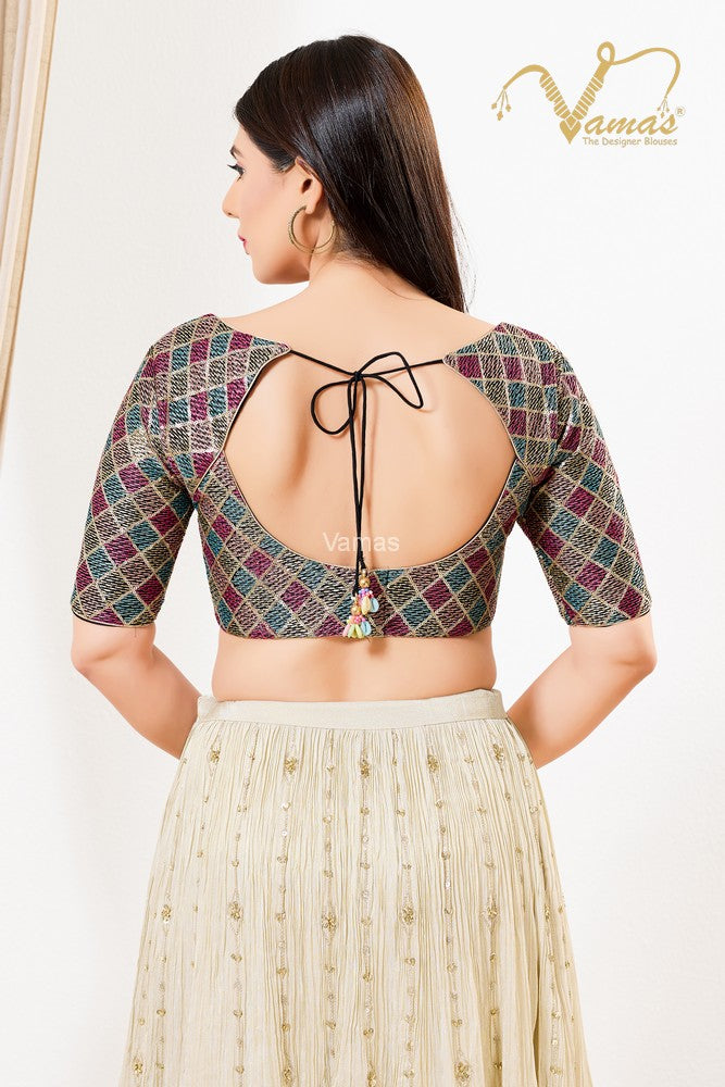 Vamas Women's Net Padded Back Open Elbow Sleeves Saree Blouse, This Is A Fully Stitched Ready-Made Padded Saree Blouse With Elbow Sleeves, Size Tip: We recommend buying a size bigger than your actual inner garment size (If your size is 32, then go for 34), 3 Openable Margin Stitches Of Approx. 2 Inches Available On Both Sides For Any Future Alterations, Care Instruction : Dry Clean Only.