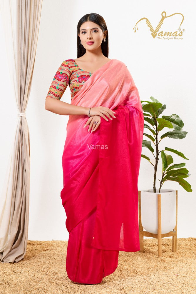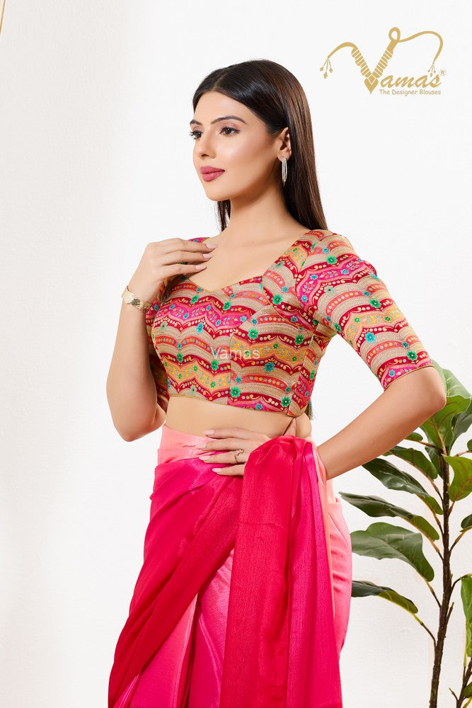 Vamas Women's Silk Padded Back Open Elbow Sleeves Saree Blouse, This Is A Fully Stitched Ready-Made Padded Saree Blouse With Elbow Sleeves, Size Tip: We recommend buying a size bigger than your actual inner garment size (If your size is 32, then go for 34), 3 Openable Margin Stitches Of Approx. 2 Inches Available On Both Sides For Any Future Alterations, Care Instruction : Dry Clean Only.