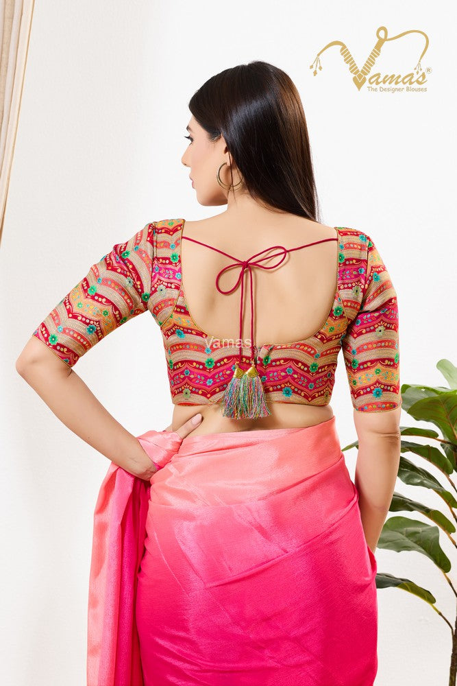 Vamas Women's Silk Padded Back Open Elbow Sleeves Saree Blouse ( B-269.ELB )