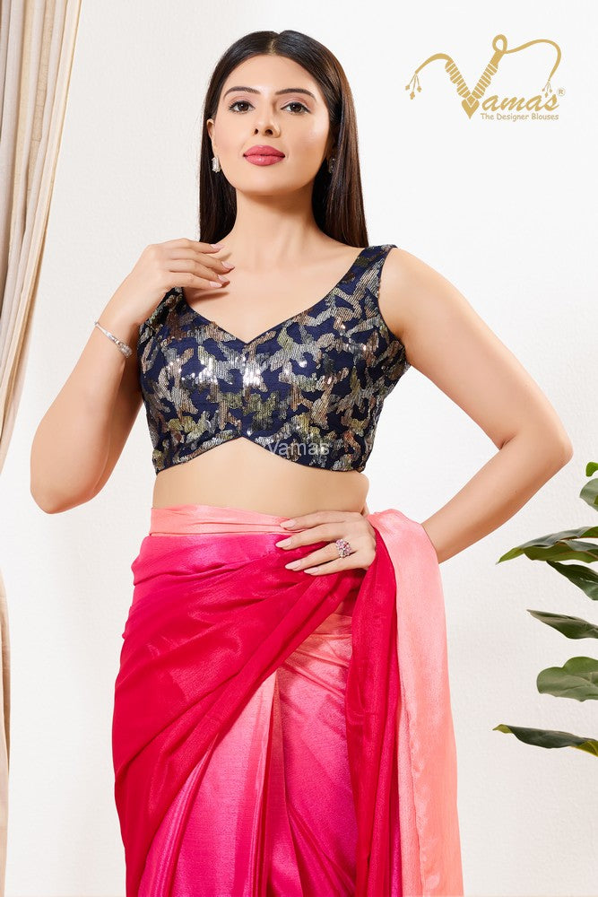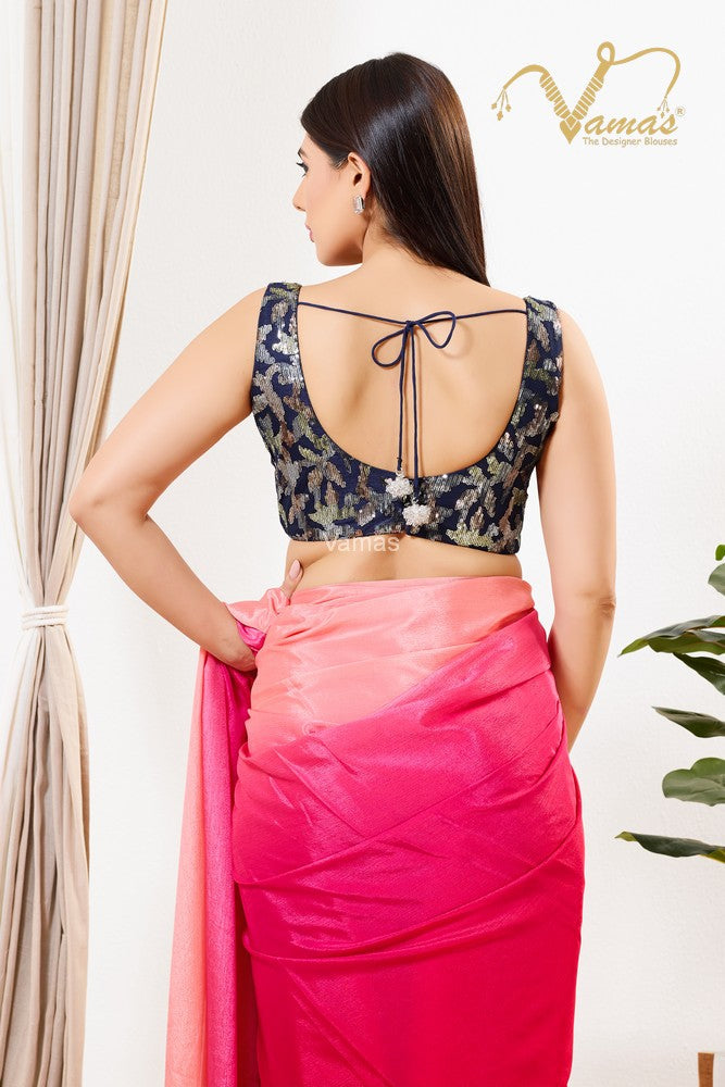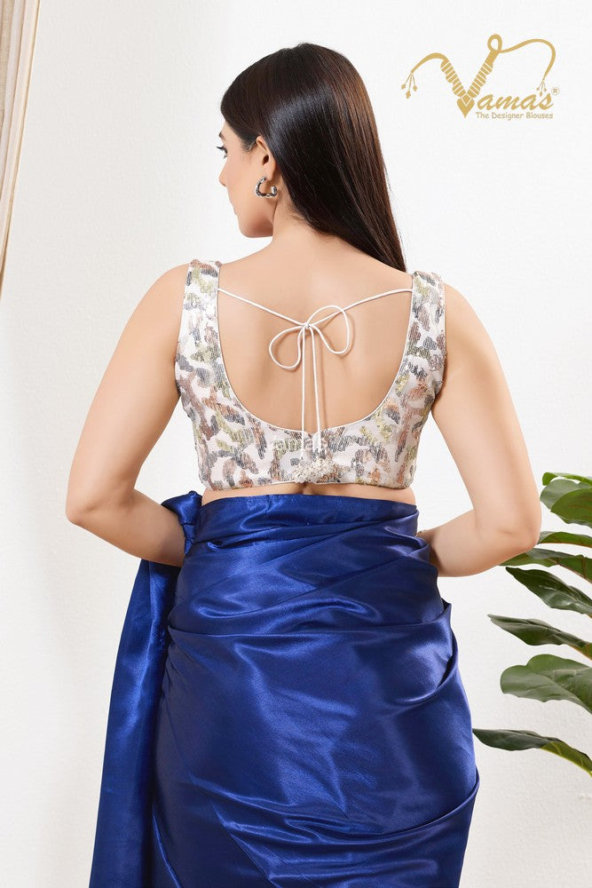 Vamas Women's Silk Padded Back Open Sleeveless Saree Blouse ( B-270.NS )