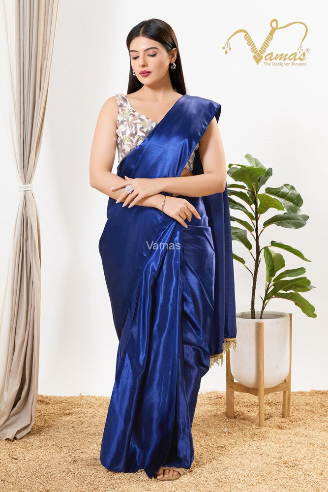 Vamas Women's Silk Padded Back Open Sleeveless Saree Blouse, This Is A Fully Stitched Ready-Made Padded Saree Blouse With No Sleeves, Size Tip: We recommend buying a size bigger than your actual inner garment size (If your size is 32, then go for 34), 3 Openable Margin Stitches Of Approx. 2 Inches Available On Both Sides For Any Future Alterations, Care Instruction : Dry Clean Only.