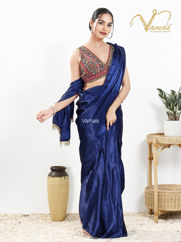 Vamas Women's Georgette Padded Back Open Sleeveless Saree Blouse ( B-274.NS )