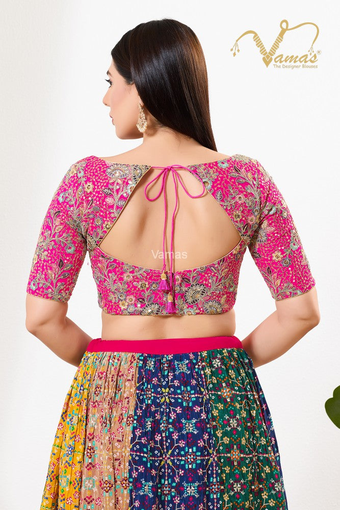 Vamas Women's Silk Padded Back Open Elbow Sleeves Saree Blouse, This Is A Fully Stitched Ready-Made Padded Saree Blouse With Elbow Sleeves, Size Tip: We recommend buying a size bigger than your actual inner garment size (If your size is 32, then go for 34), 3 Openable Margin Stitches Of Approx. 2 Inches Available On Both Sides For Any Future Alterations, Care Instruction : Dry Clean Only.