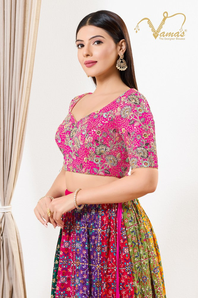 Vamas Women's Silk Padded Back Open Elbow Sleeves Saree Blouse ( B-278.ELB )
