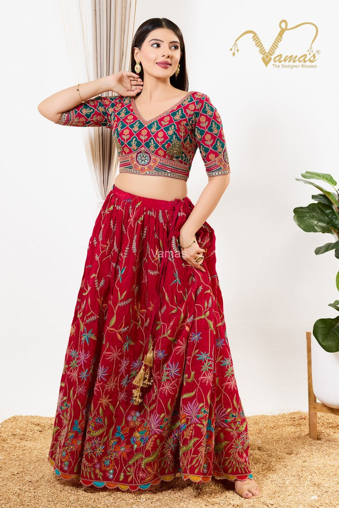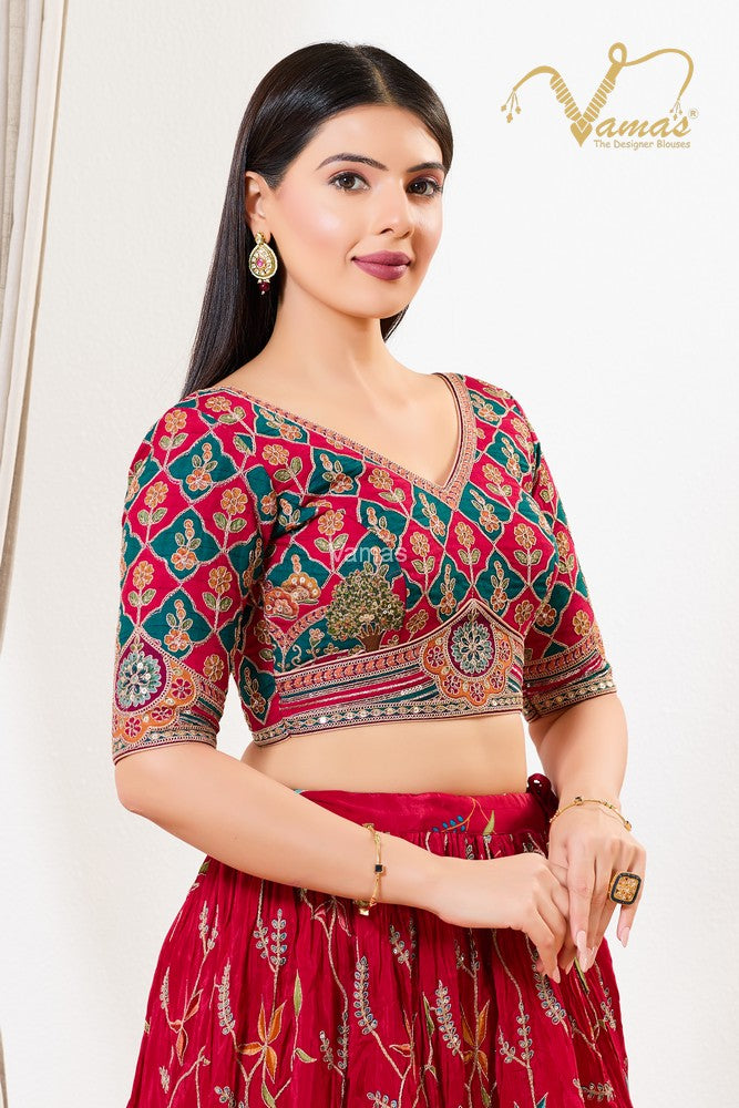 Vamas Women's Silk Padded Back Open Elbow Sleeves Saree Blouse ( B-281.ELB )