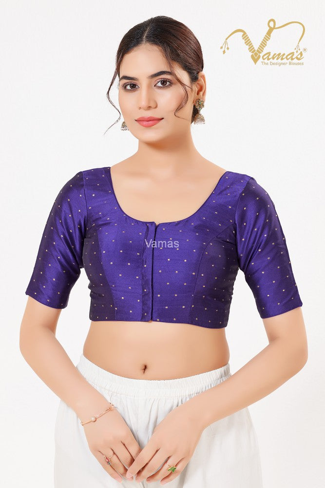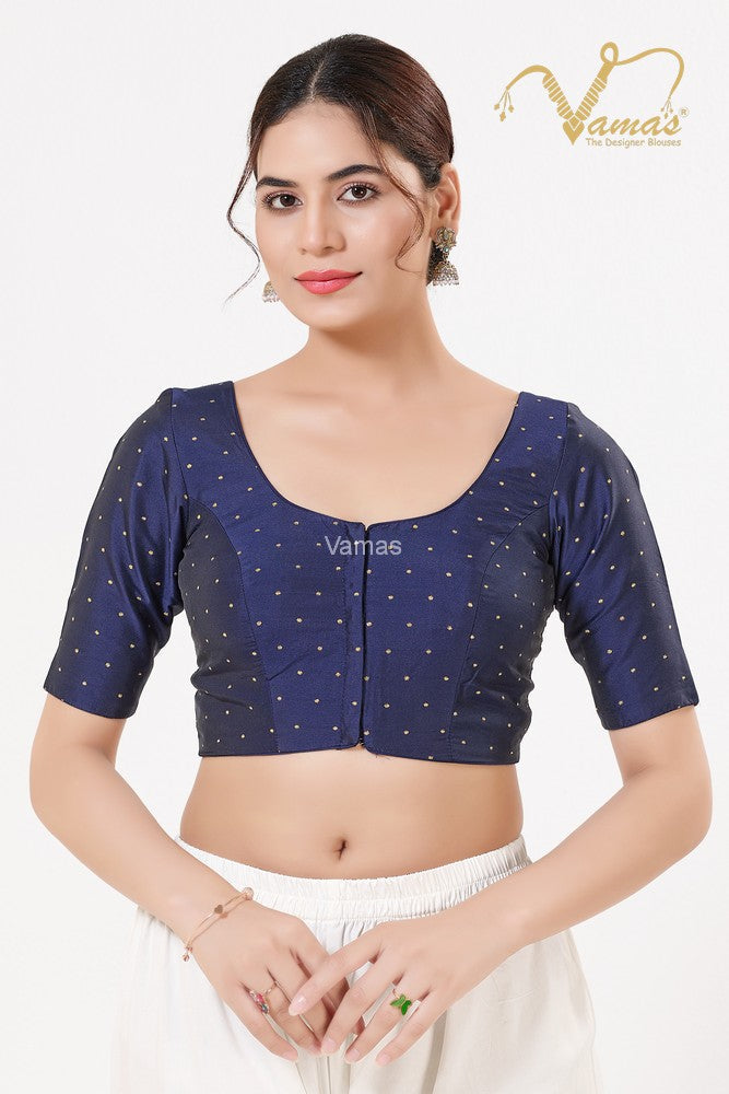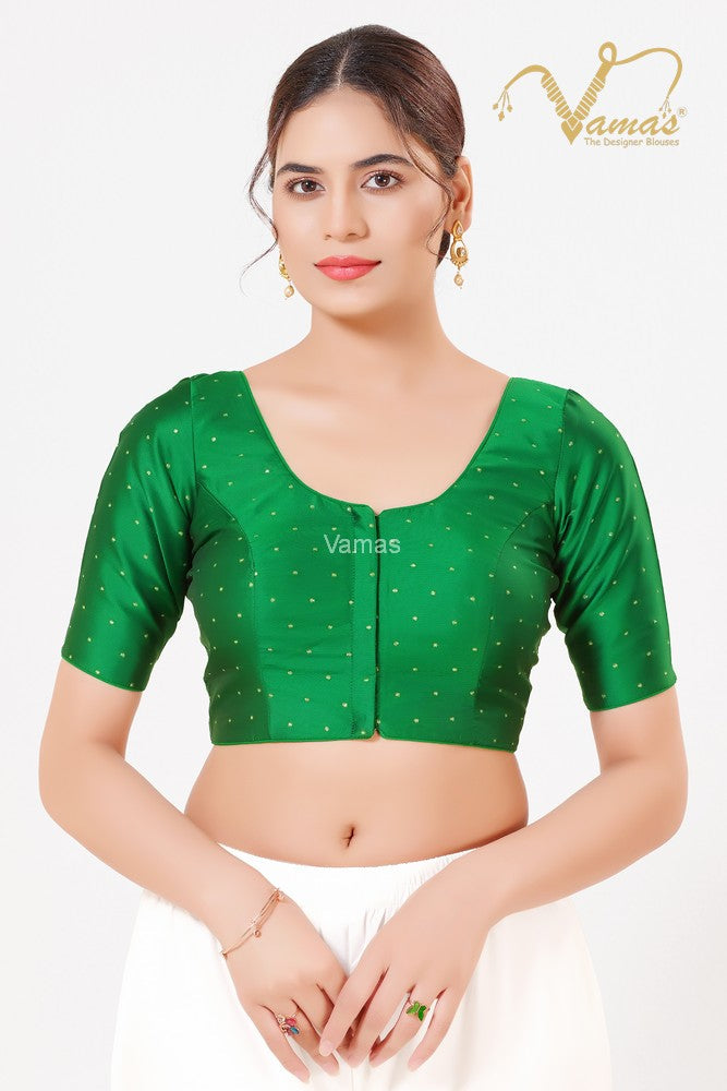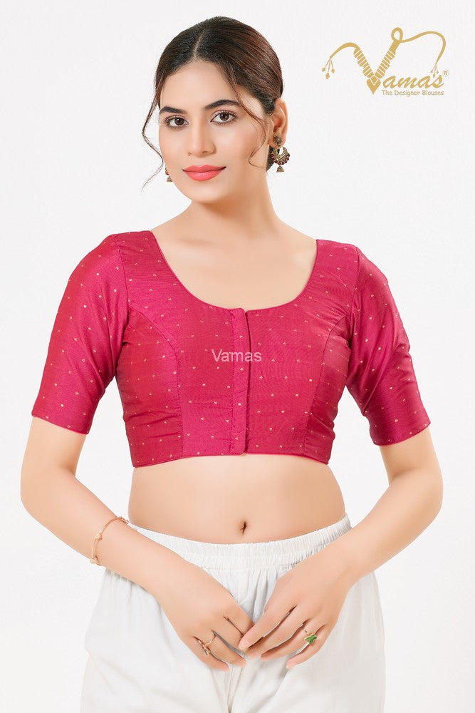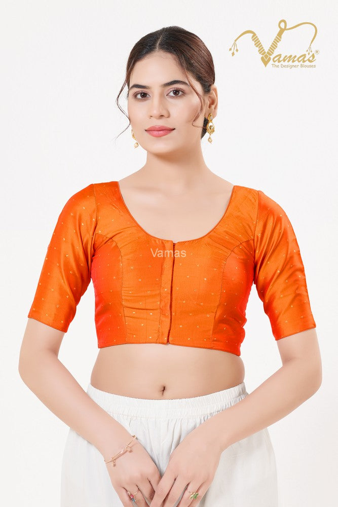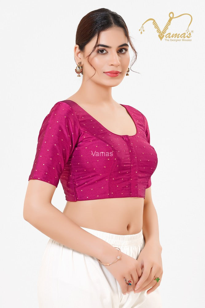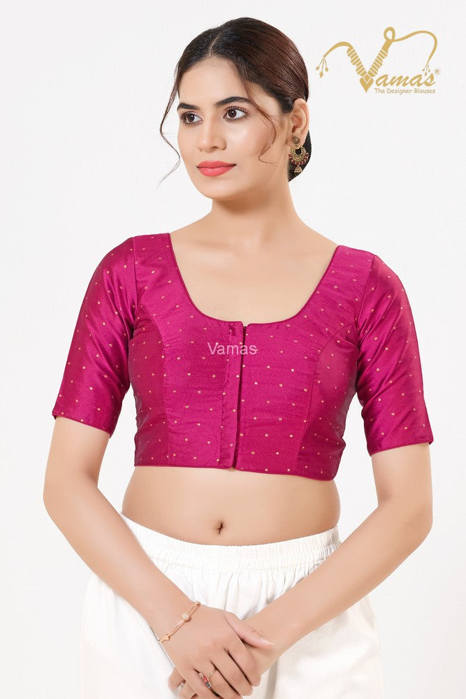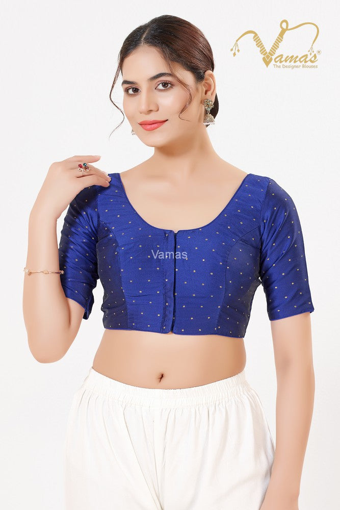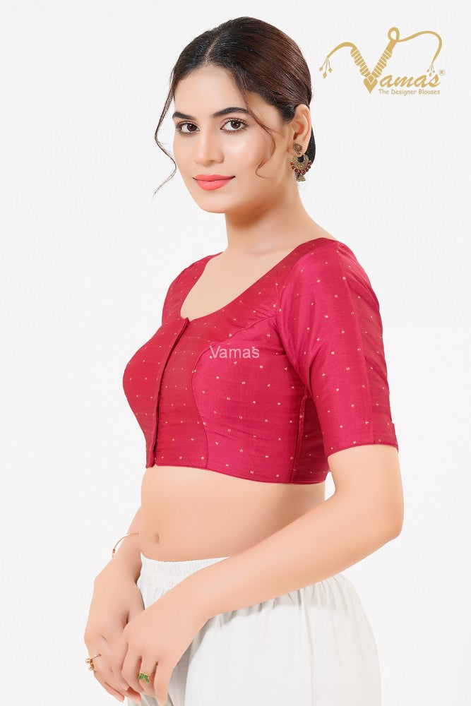 Vamas Women's Tafeta Silk Padded Front Open Elbow Sleeves Saree Blouse ( E-729 )