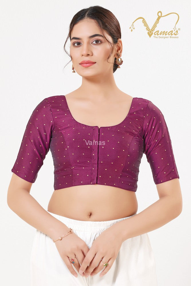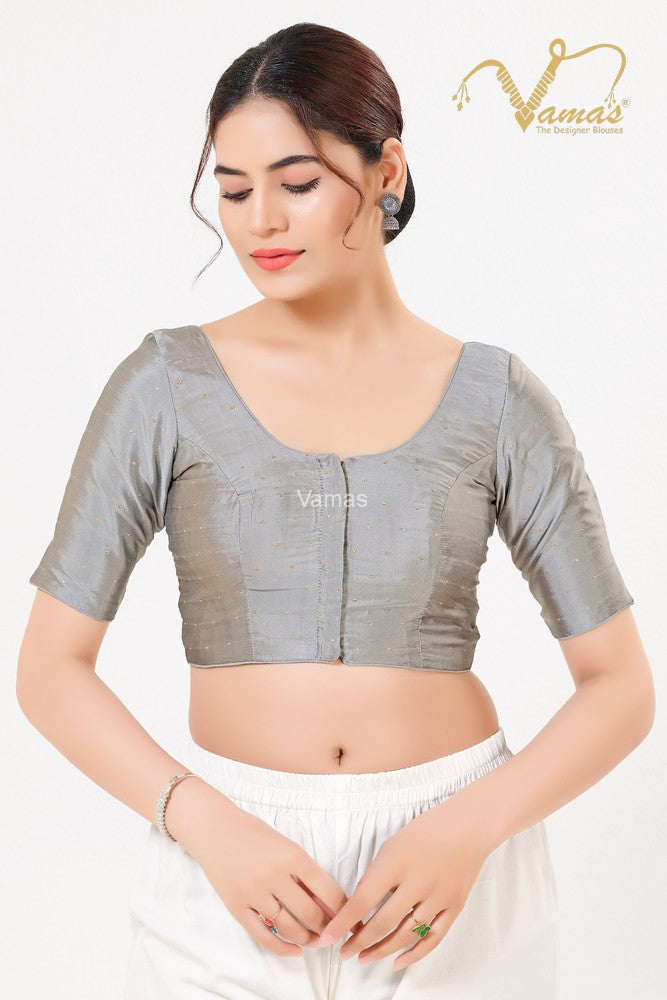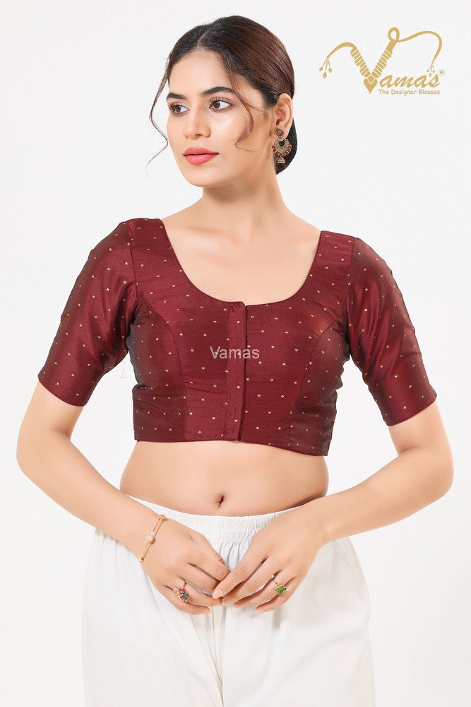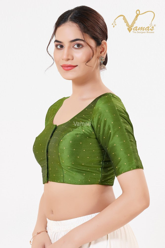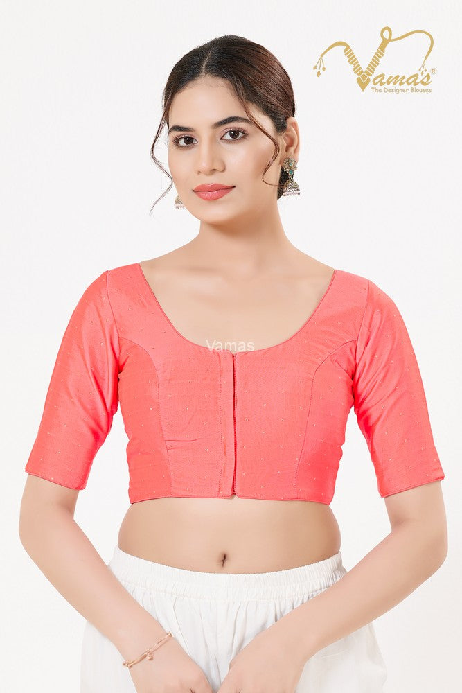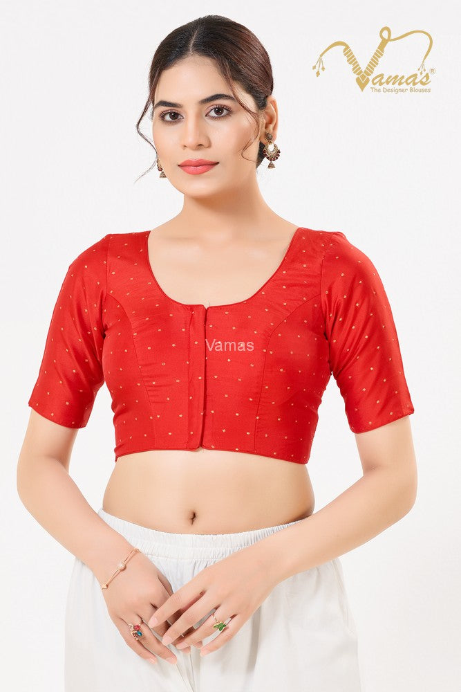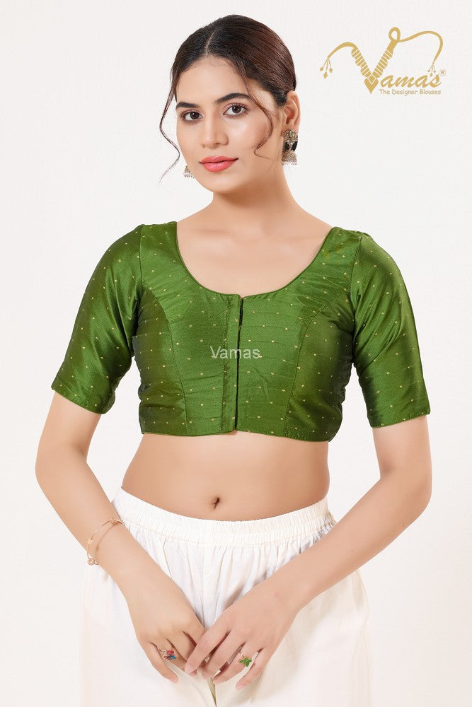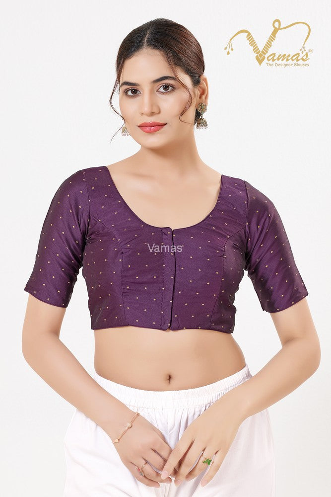Vamas Women's Tafeta Silk Padded Front Open Elbow Sleeves Saree Blouse ( E-729 )