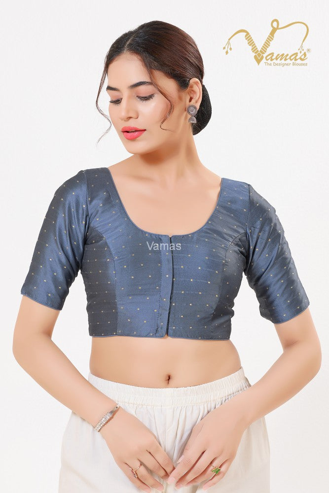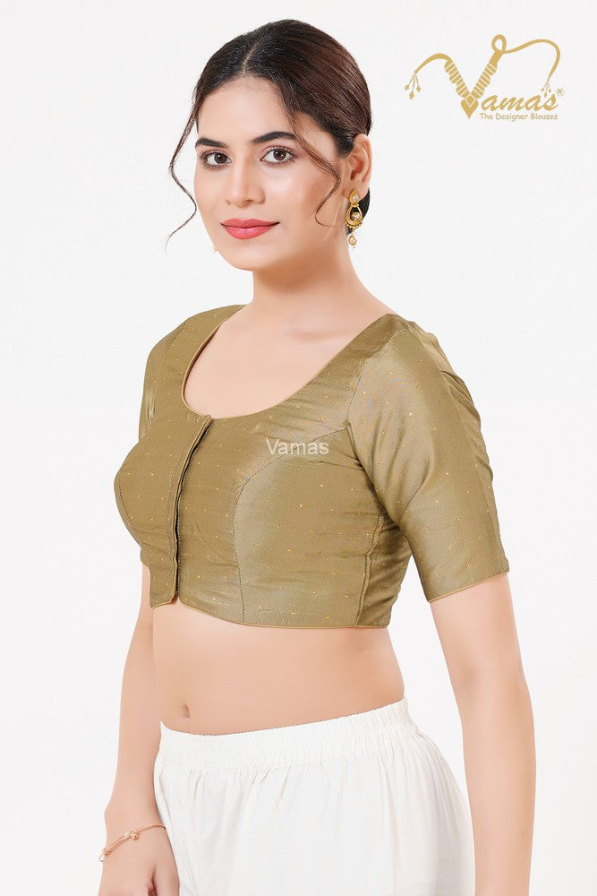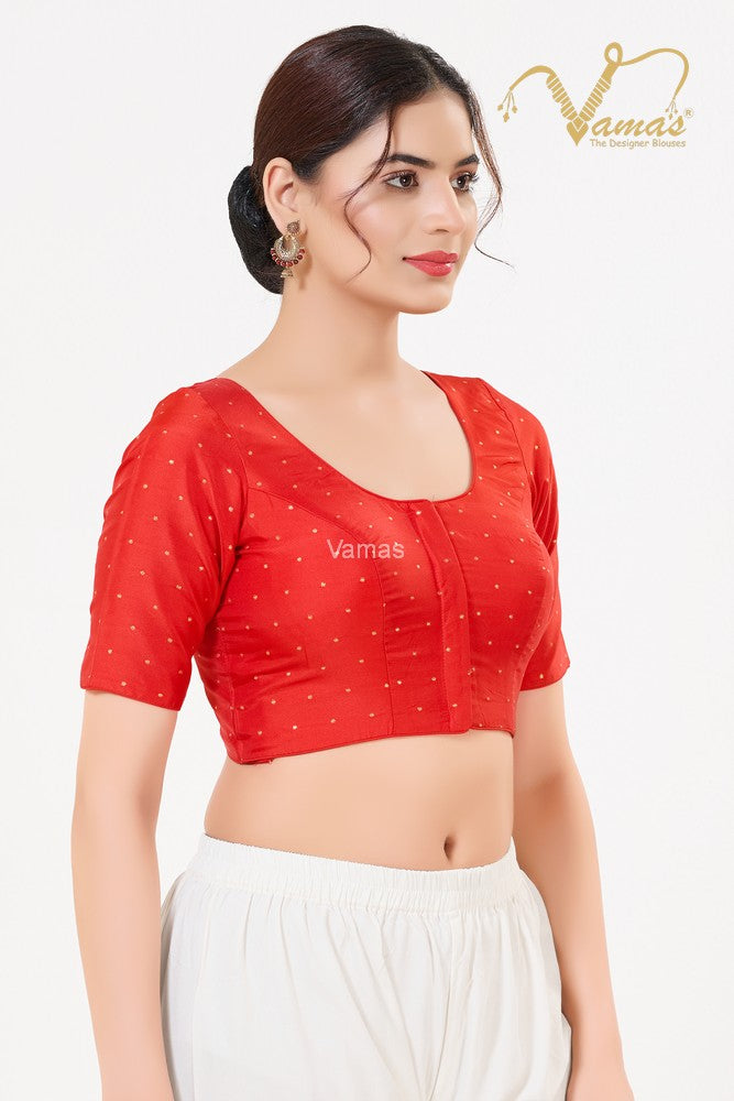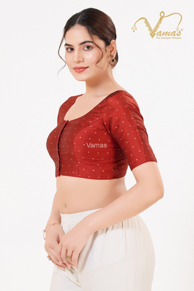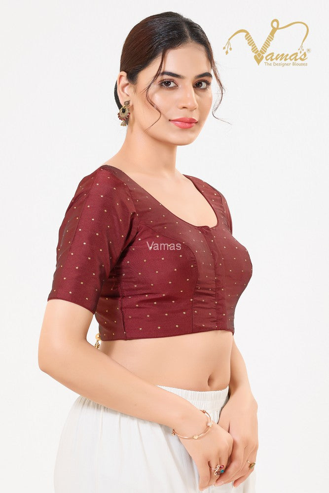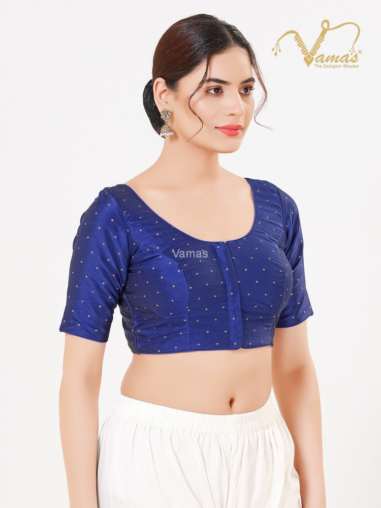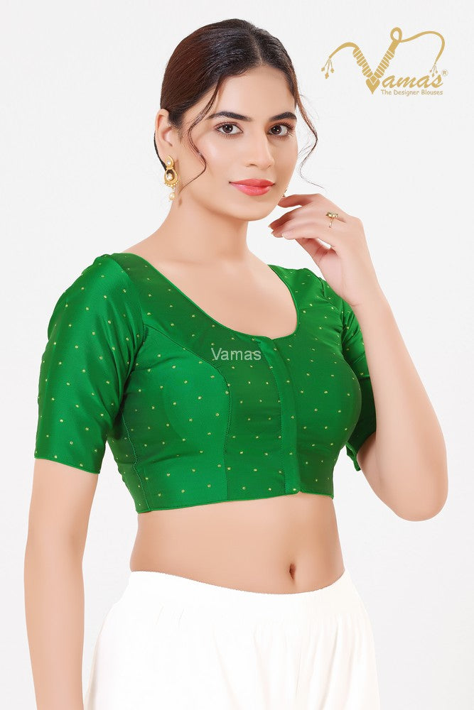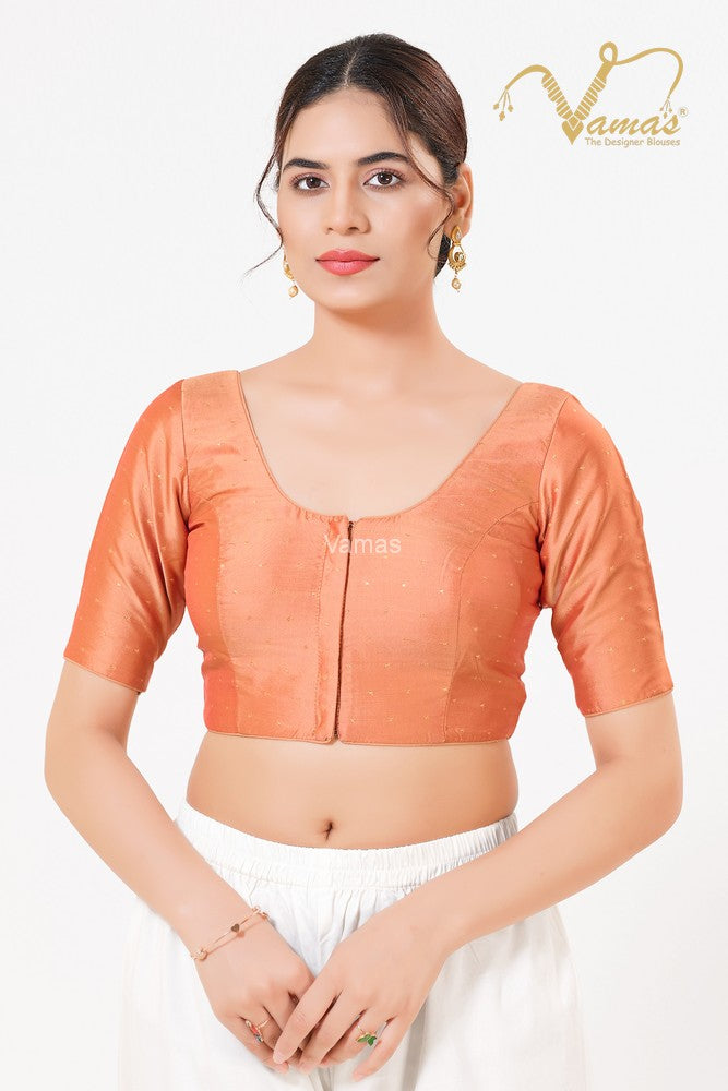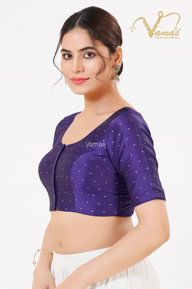 Vamas Women's Tafeta Silk Padded Front Open Elbow Sleeves Saree Blouse ( E-729 )