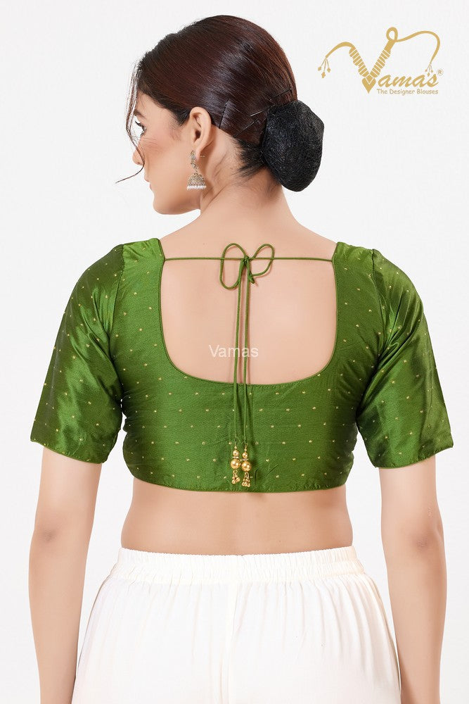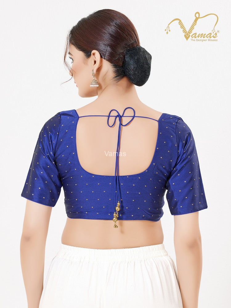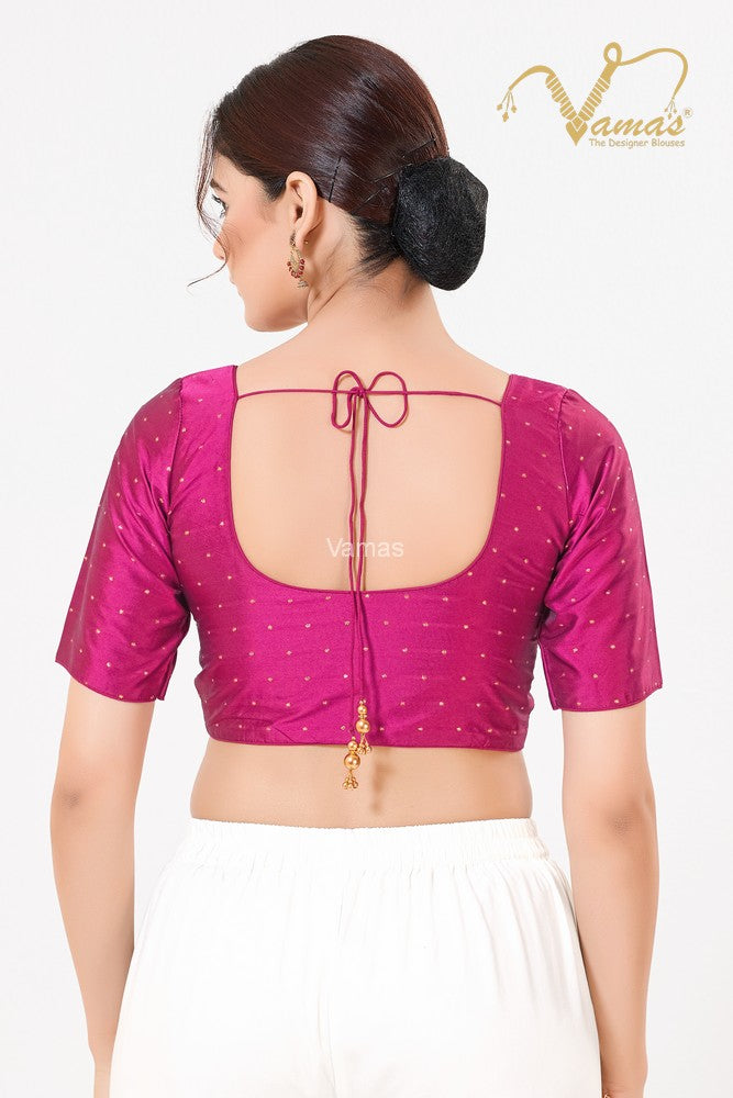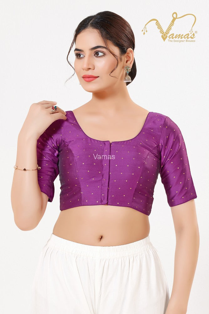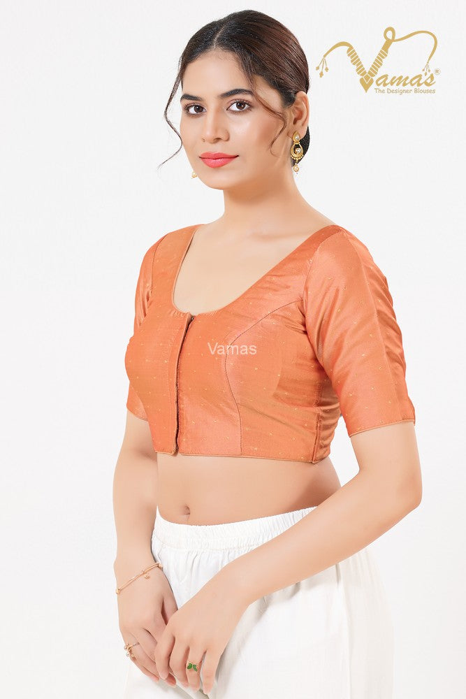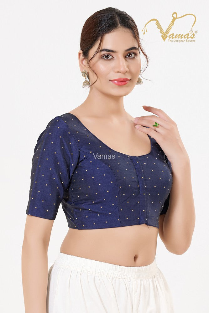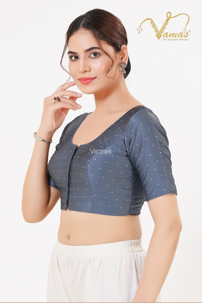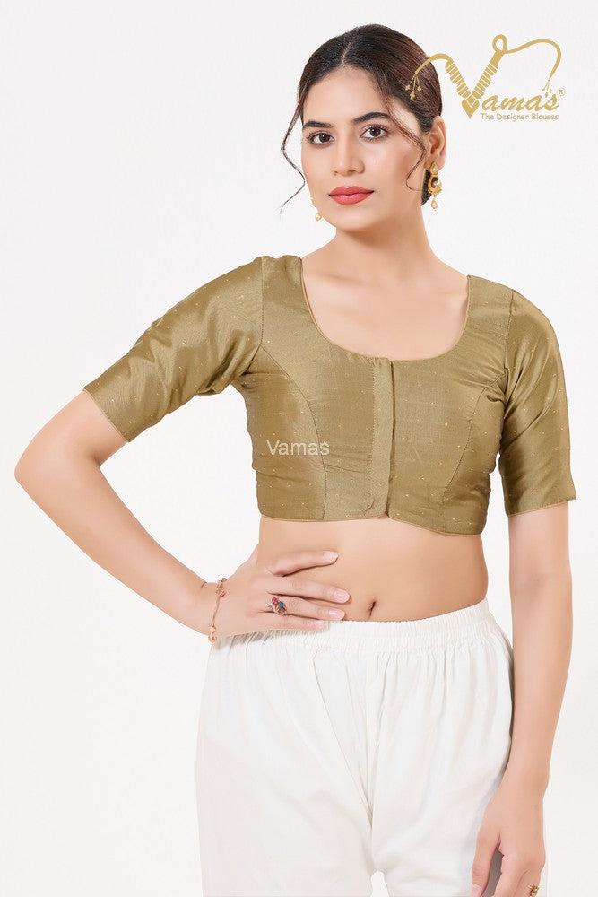 Vamas Women's Tafeta Silk Padded Front Open Elbow Sleeves Saree Blouse ( E-729 )