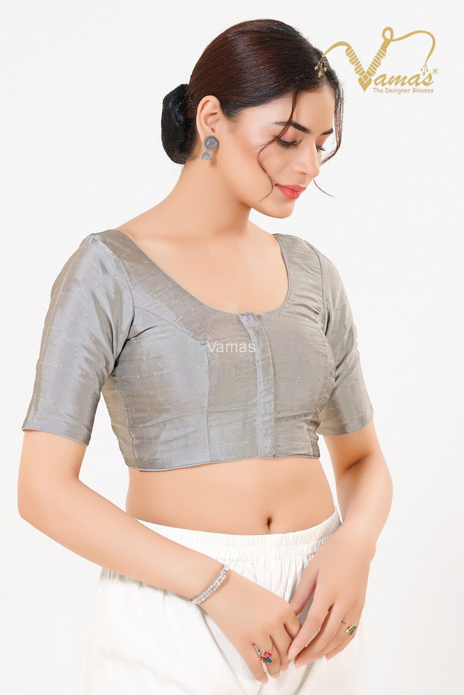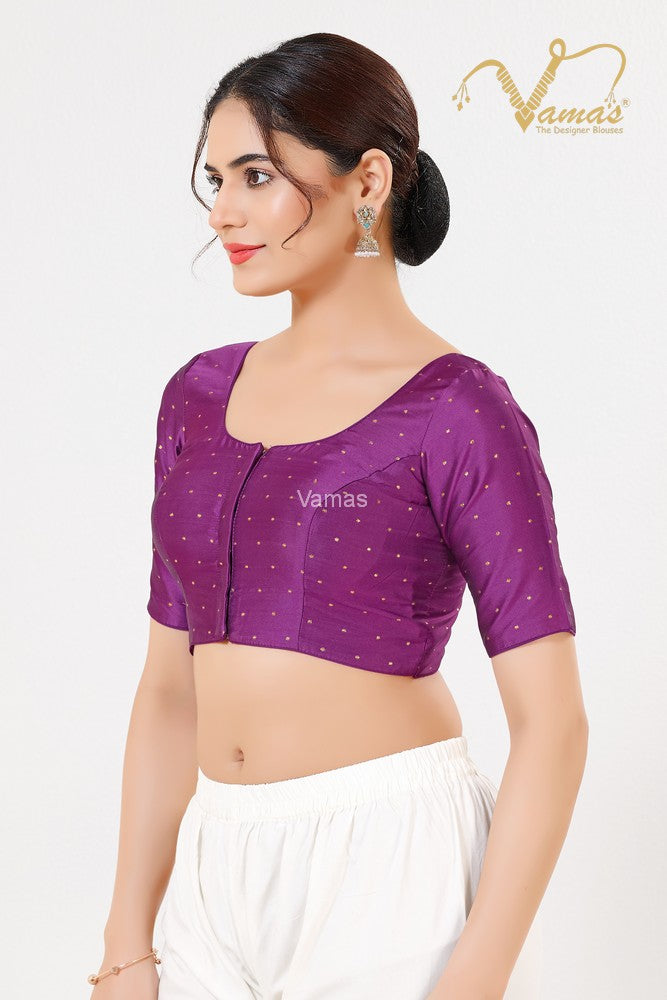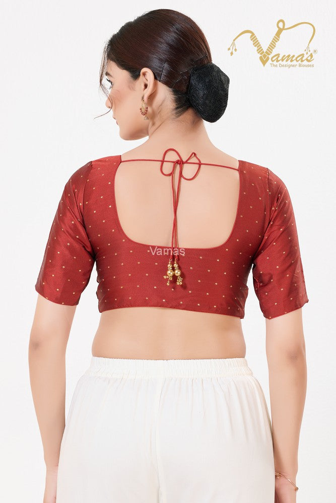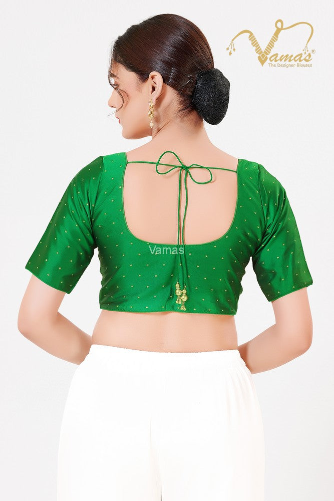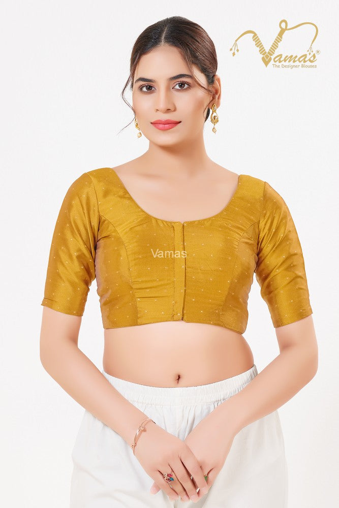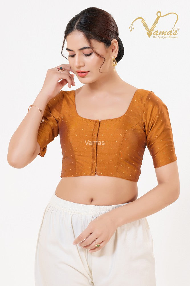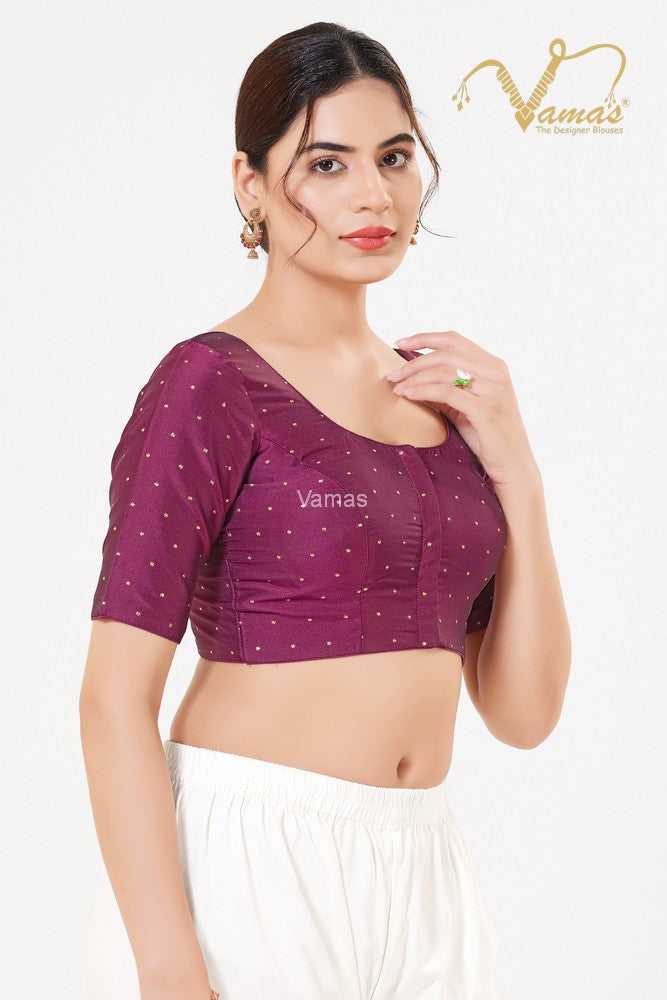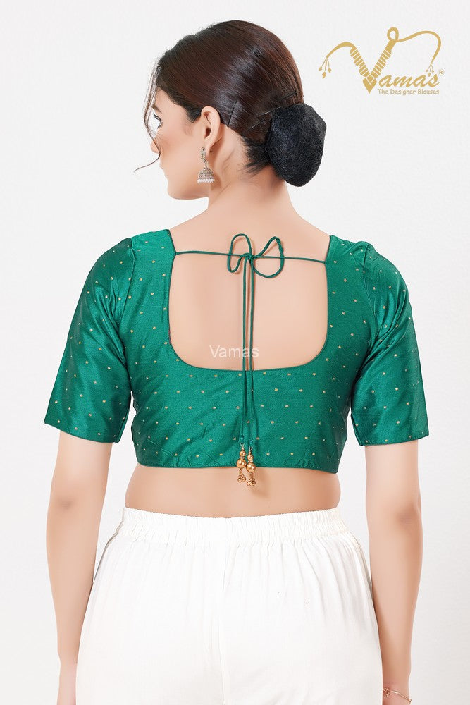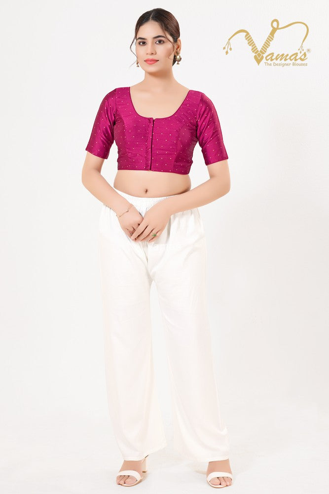 Vamas Women's Tafeta Silk Padded Front Open Elbow Sleeves Saree Blouse ( E-729 )