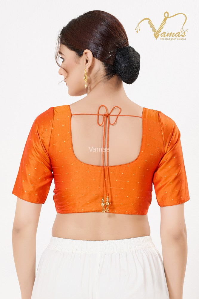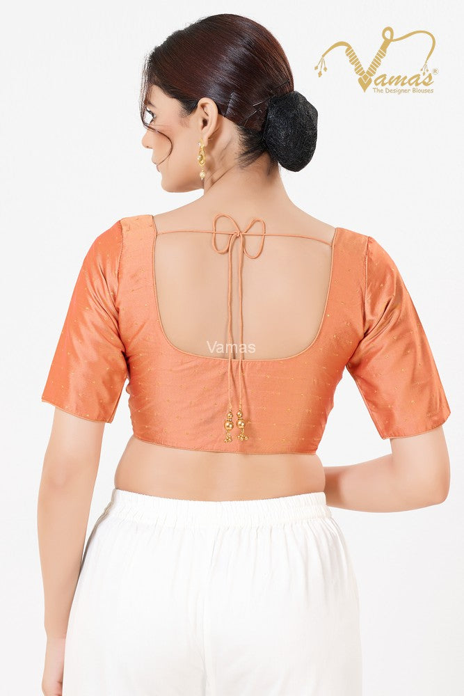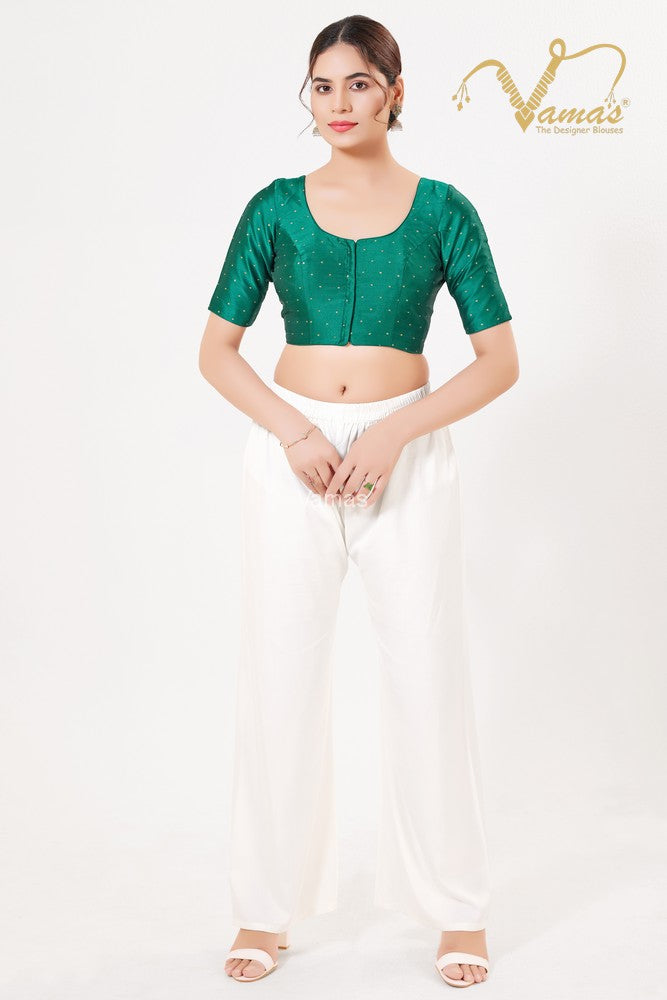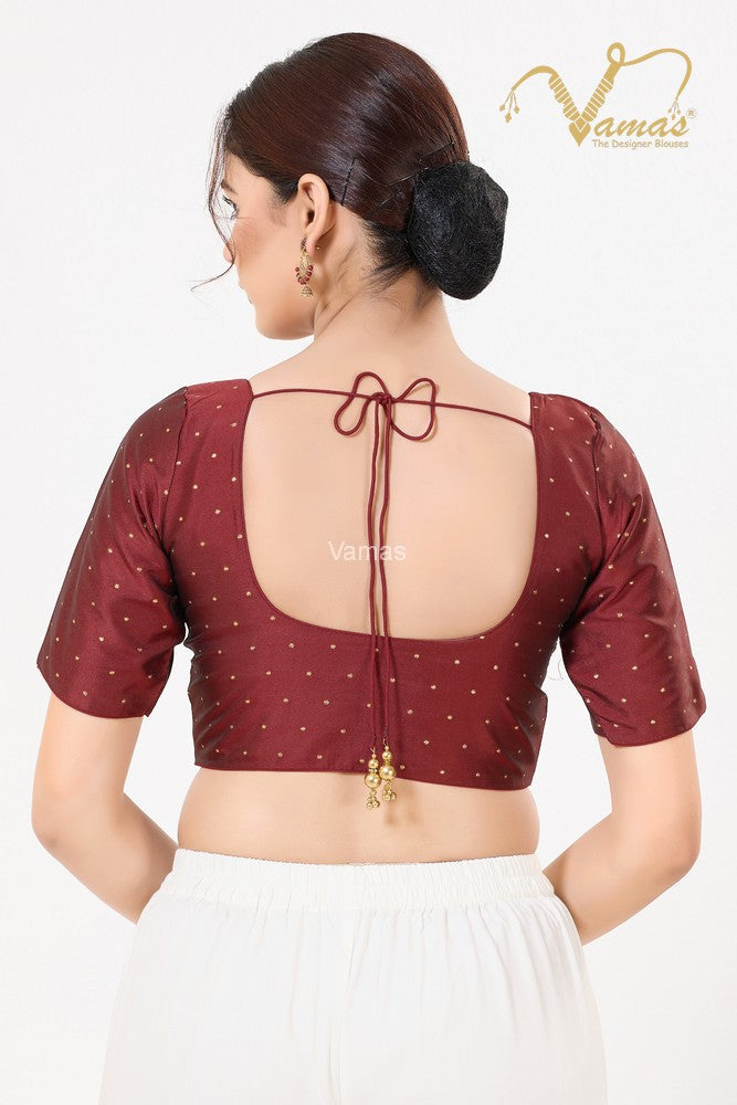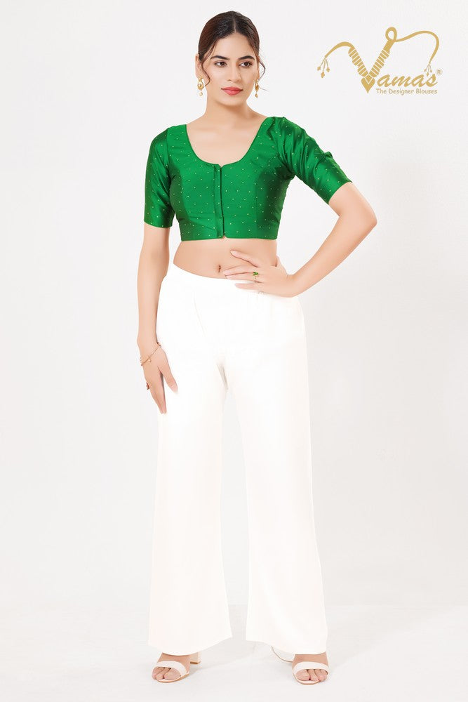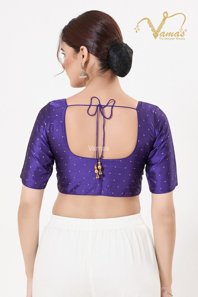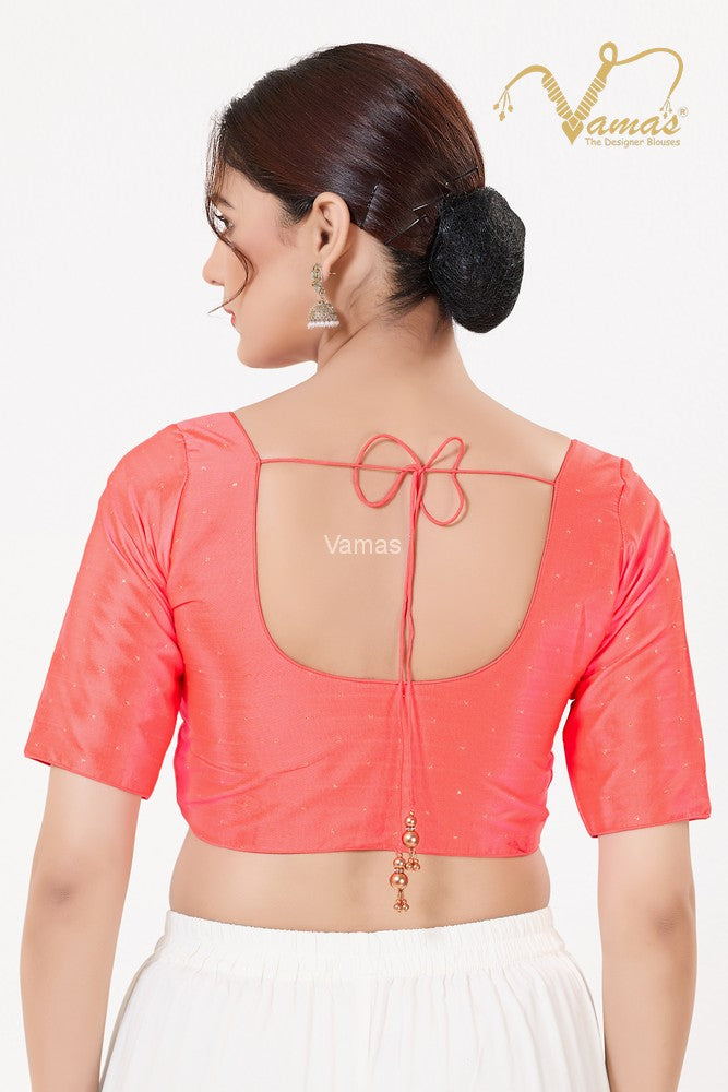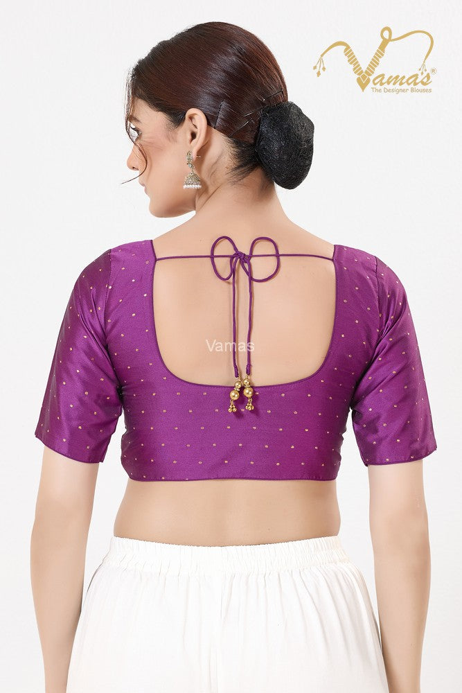 Vamas Women's Tafeta Silk Padded Front Open Elbow Sleeves Saree Blouse ( E-729 )