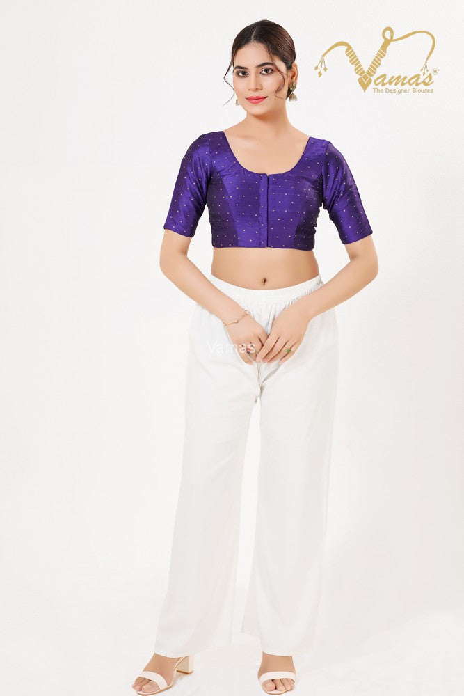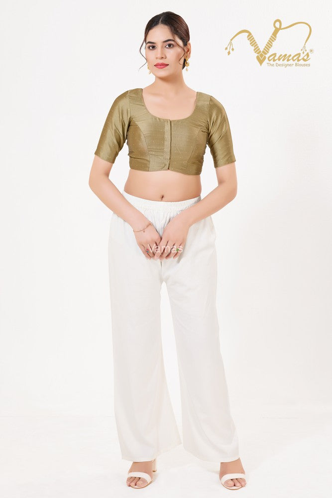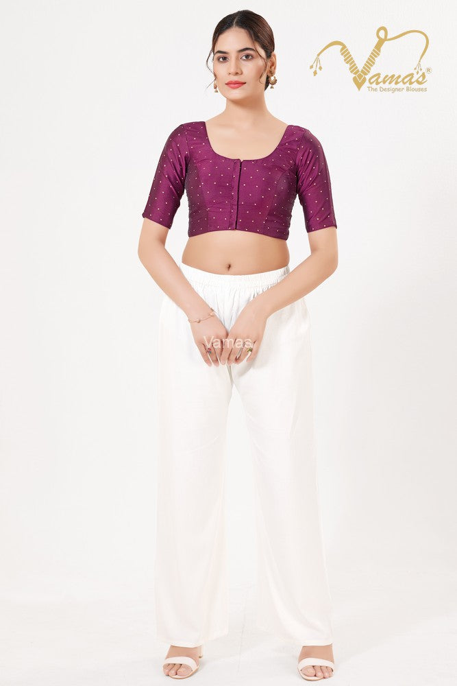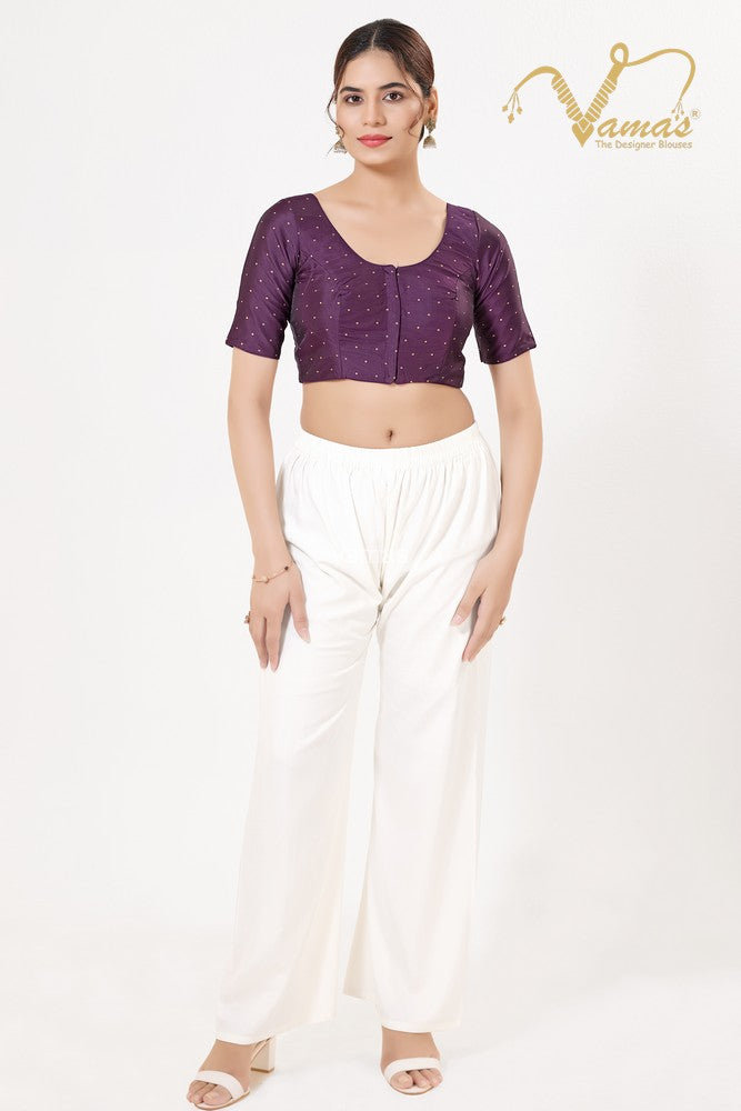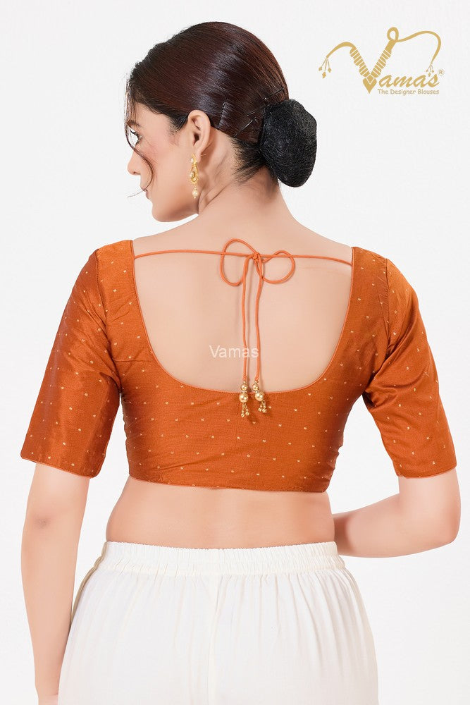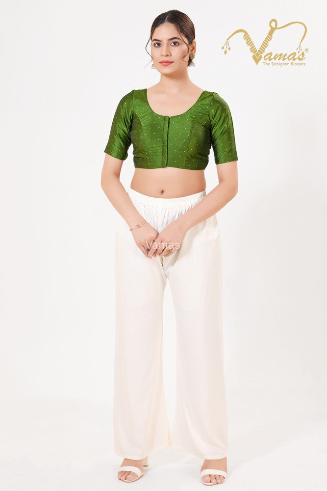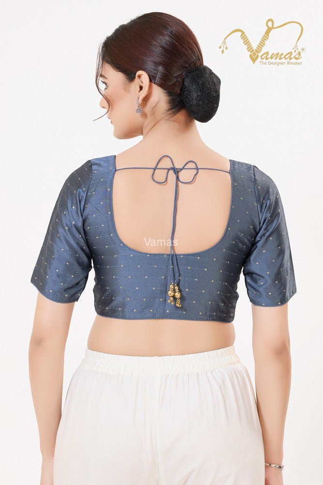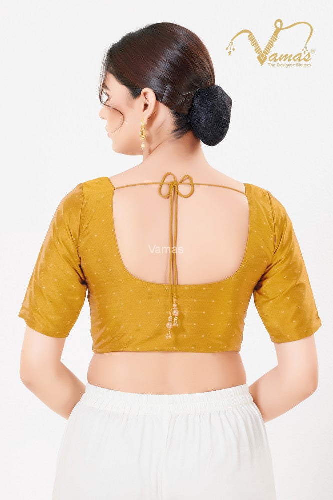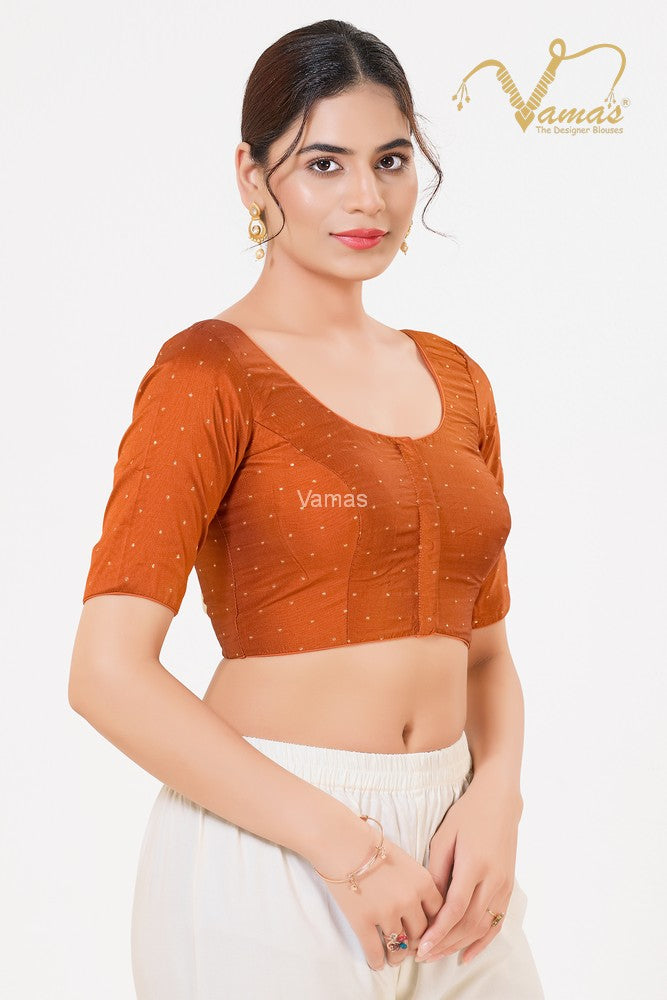 Vamas Women's Tafeta Silk Padded Front Open Elbow Sleeves Saree Blouse ( E-729 )