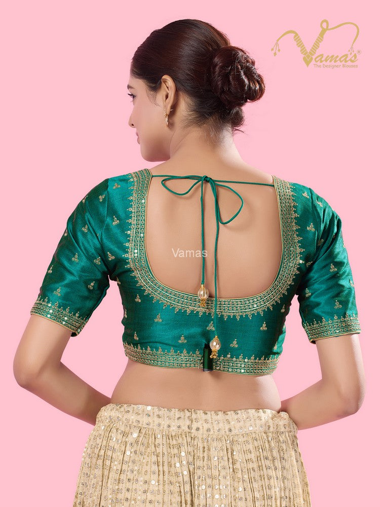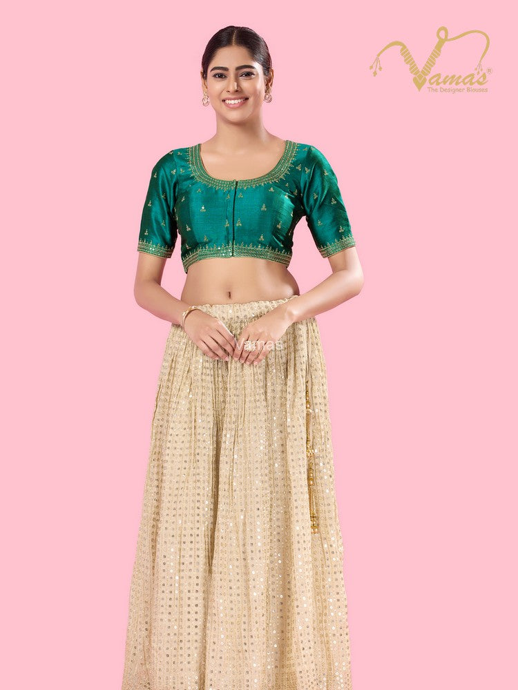 Vamas Women's Mulbury Silk Padded Front Open Elbow Sleeves Saree Blouse, This Is A Fully Stitched Ready-Made Padded Saree Blouse With Elbow Sleeves, Size Tip: We recommend buying a size bigger than your actual inner garment size (If your size is 32, then go for 34), 3 Openable Margin Stitches Of Approx. 2 Inches Available On Both Sides For Any Future Alterations, Care Instruction : Dry Clean Only.