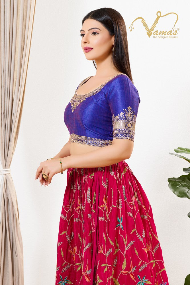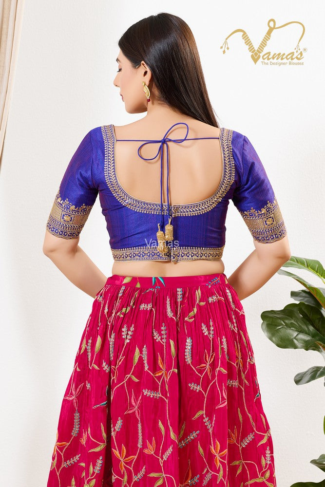 Vamas Women's Mulberry-Silk Padded Back Open Elbow Sleeves Saree Blouse, This Is A Fully Stitched Ready-Made Padded Saree Blouse With Elbow Sleeves, Size Tip: We recommend buying a size bigger than your actual inner garment size (If your size is 32, then go for 34), 3 Openable Margin Stitches Of Approx. 2 Inches Available On Both Sides For Any Future Alterations, Care Instruction : Dry Clean Only.