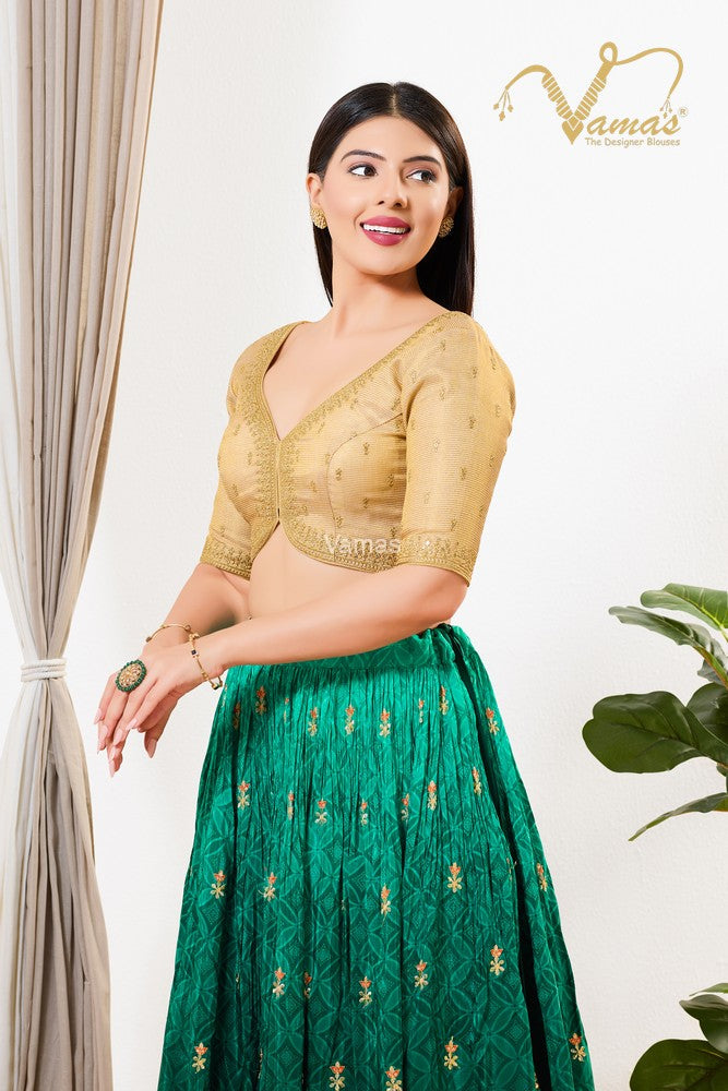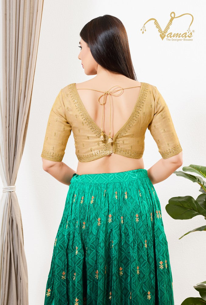 Vamas Women's Tissue Padded Back Open Elbow Sleeves Saree Blouse, This Is A Fully Stitched Ready-Made Padded Saree Blouse With Elbow Sleeves, Size Tip: We recommend buying a size bigger than your actual inner garment size (If your size is 32, then go for 34), 3 Openable Margin Stitches Of Approx. 2 Inches Available On Both Sides For Any Future Alterations, Care Instruction : Dry Clean Only.