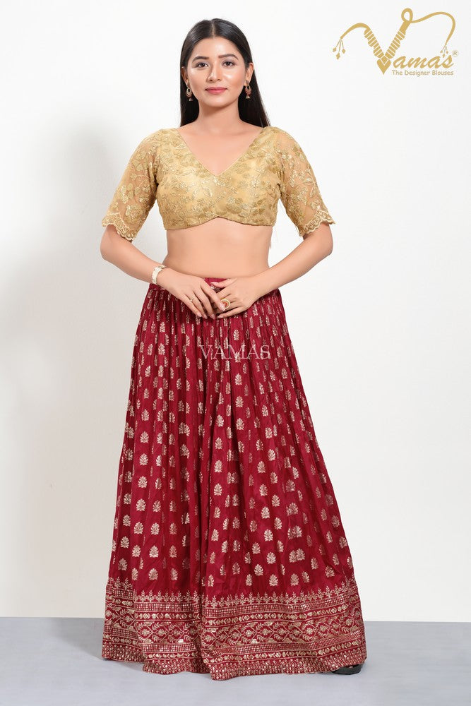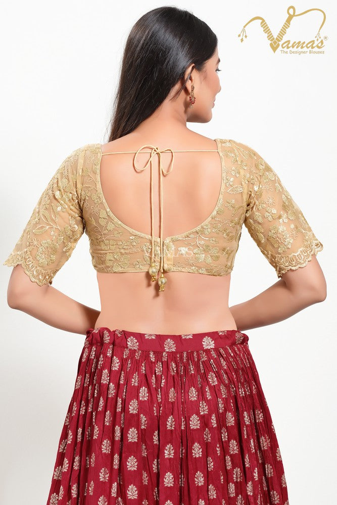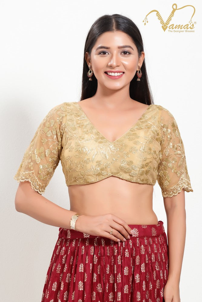 Vamas Women's Net Padded Back Open Elbow Sleeves Saree Blouse, This Is A Fully Stitched Ready-Made Padded Saree Blouse With Elbow Sleeves, Size Tip: We recommend buying a size bigger than your actual inner garment size (If your size is 32, then go for 34), 3 Openable Margin Stitches Of Approx. 2 Inches Available On Both Sides For Any Future Alterations, Care Instruction : Dry Clean Only.