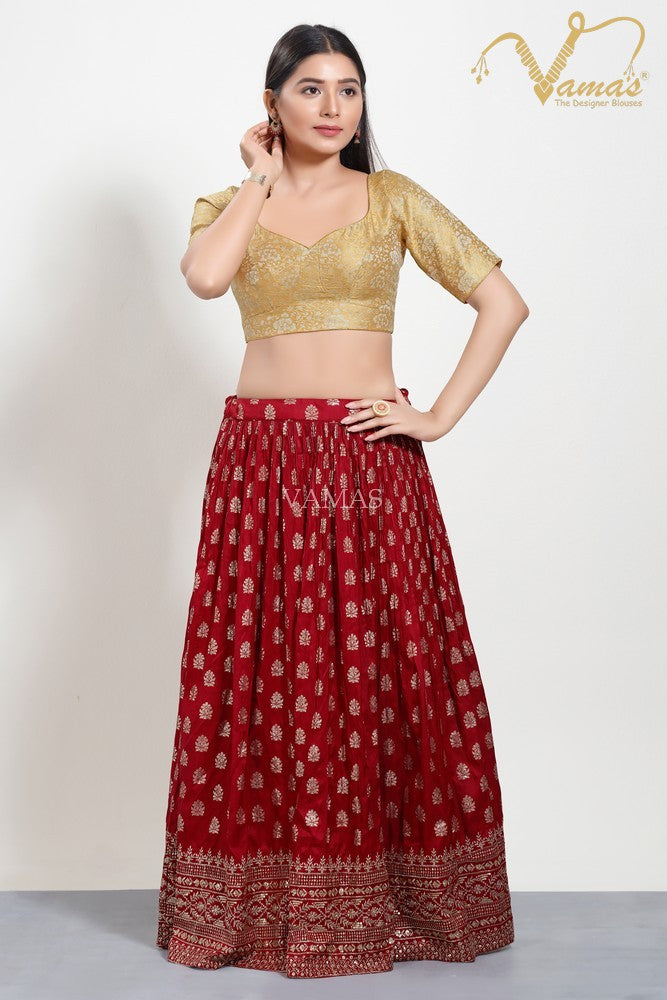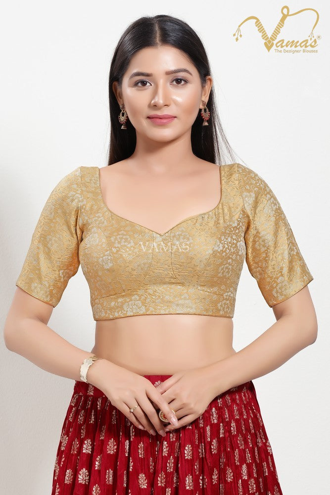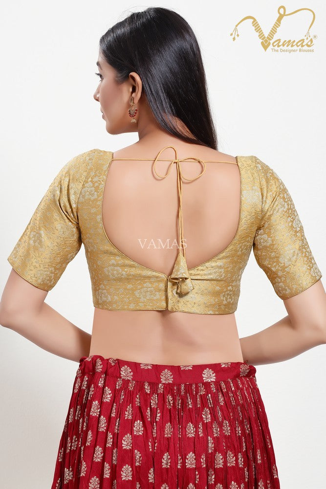Vamas Women's Jacquard Padded Back Open Elbow Sleeves Saree Blouse, This Is A Fully Stitched Ready-Made Padded Saree Blouse With Elbow Sleeves, Size Tip: We recommend buying a size bigger than your actual inner garment size (If your size is 32, then go for 34), 3 Openable Margin Stitches Of Approx. 2 Inches Available On Both Sides For Any Future Alterations, Care Instruction : Dry Clean Only.