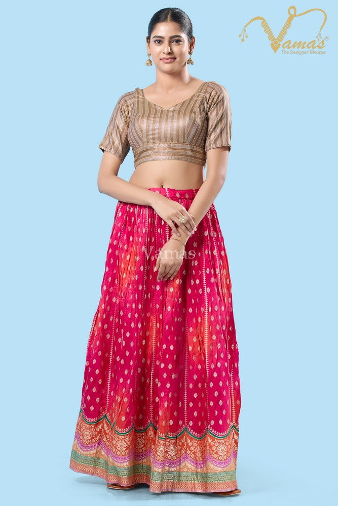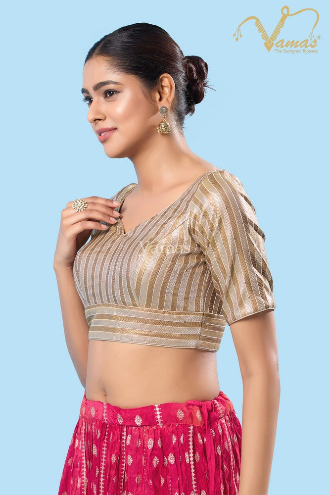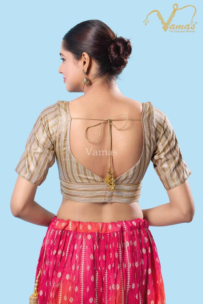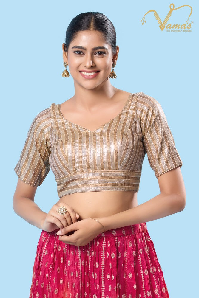 Vamas Women's Brocade Padded Back Open Elbow Sleeves Saree Blouse, This Is A Fully Stitched Ready-Made Padded Saree Blouse With Elbow Sleeves, Size Tip: We recommend buying a size bigger than your actual inner garment size (If your size is 32, then go for 34), 3 Openable Margin Stitches Of Approx. 2 Inches Available On Both Sides For Any Future Alterations, Care Instruction : Dry Clean Only.