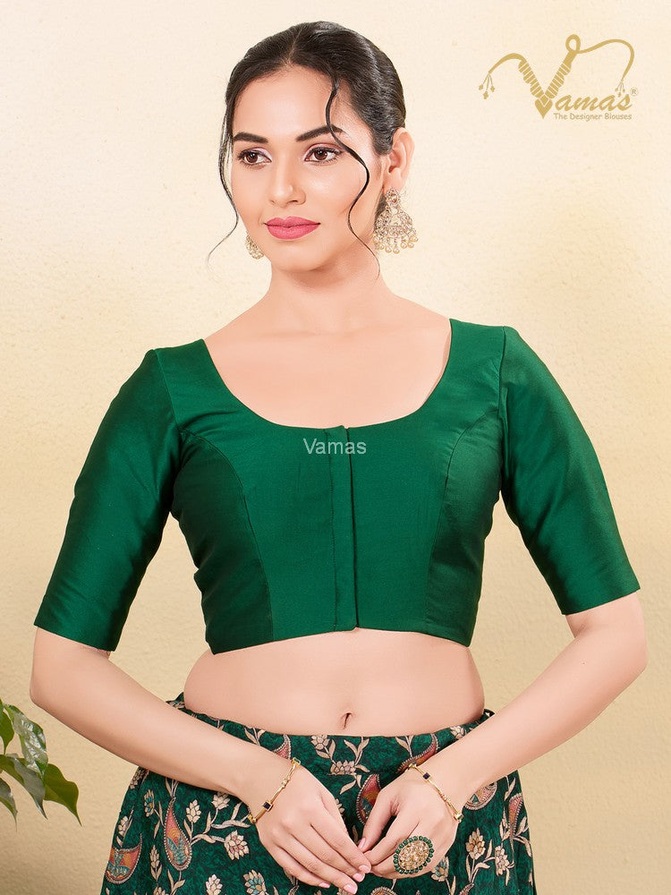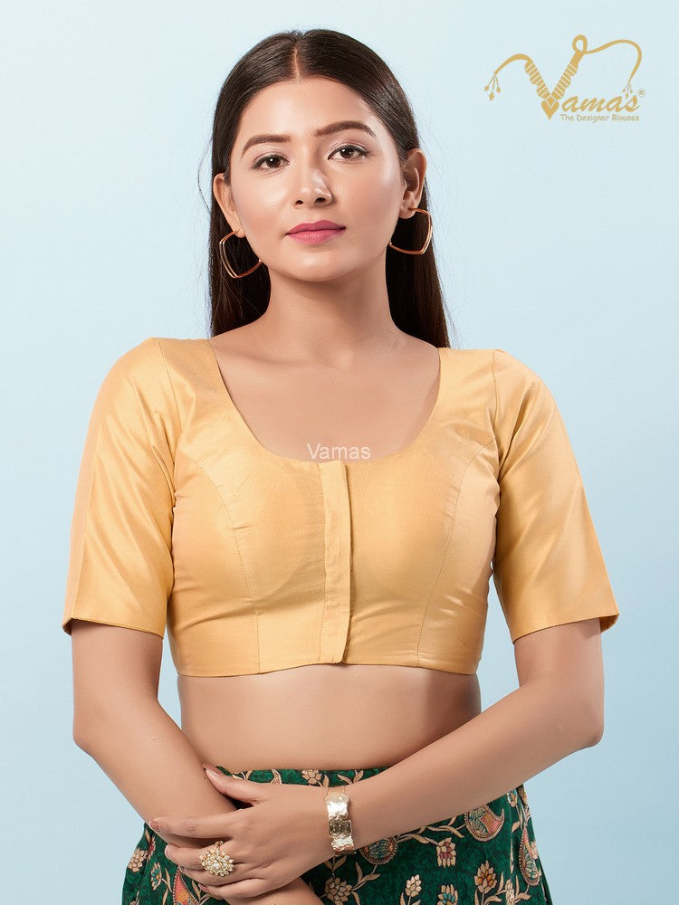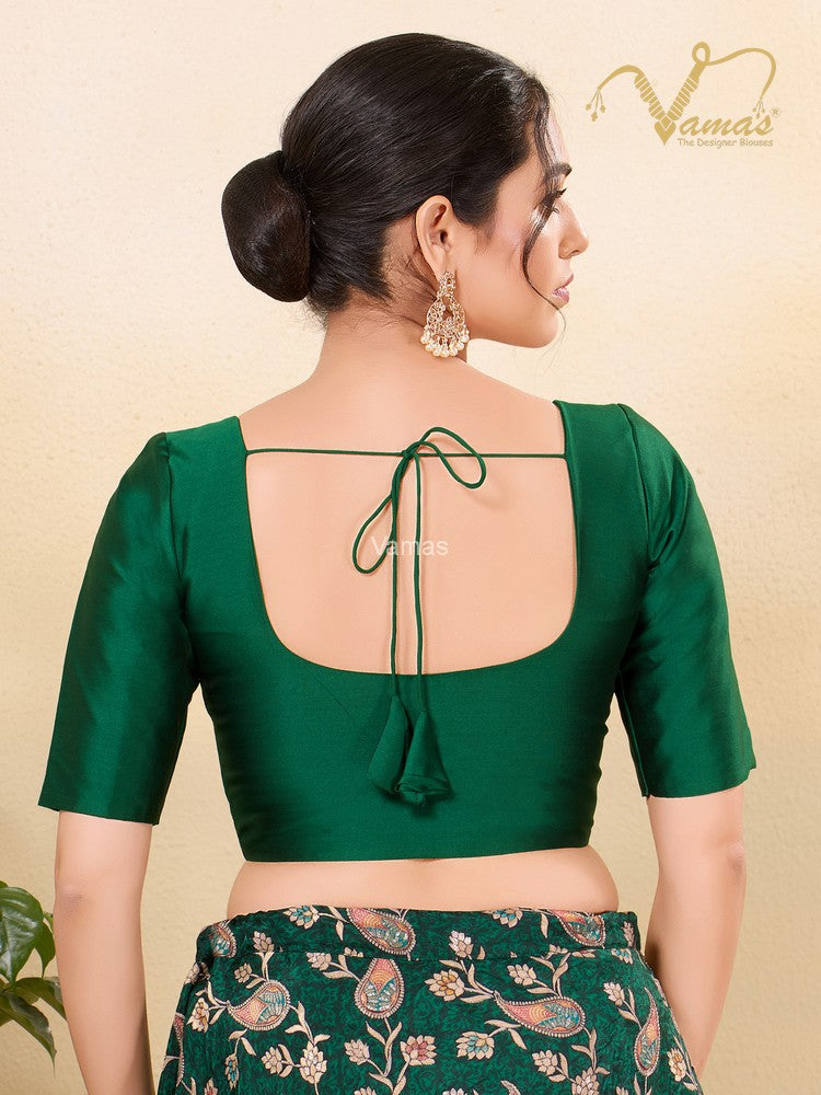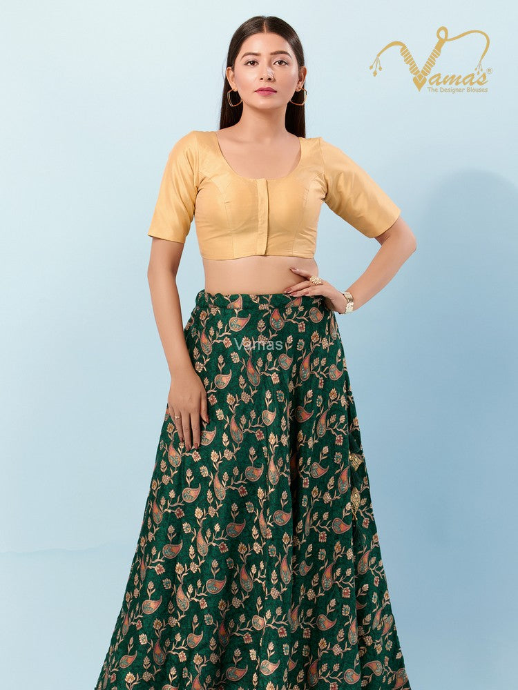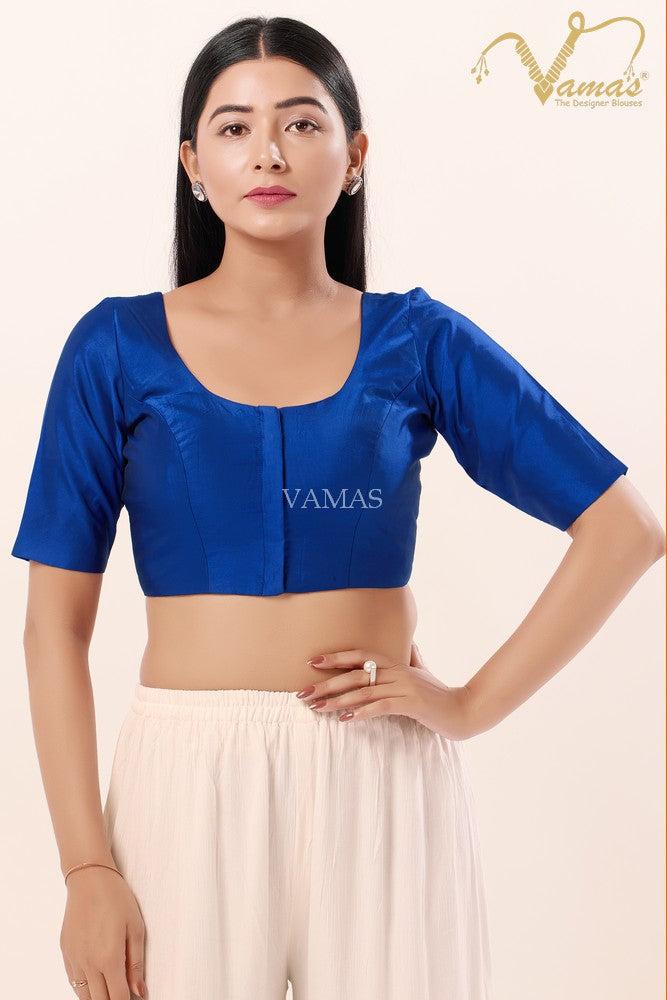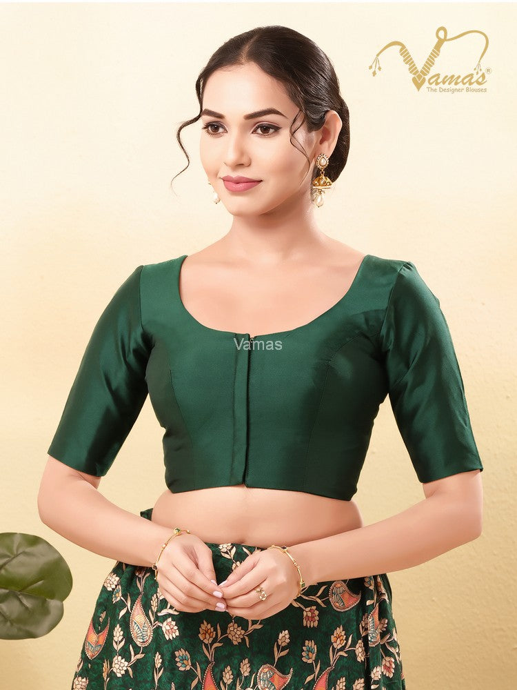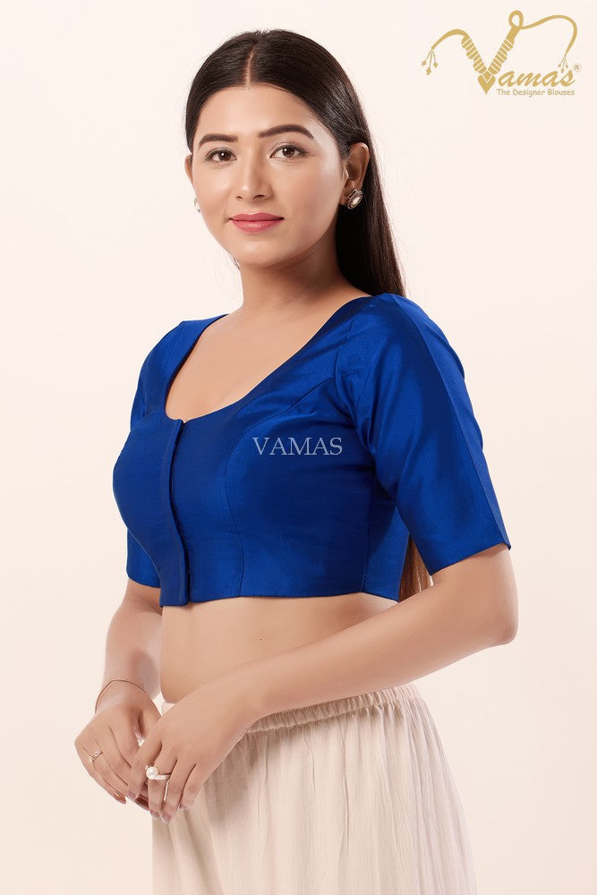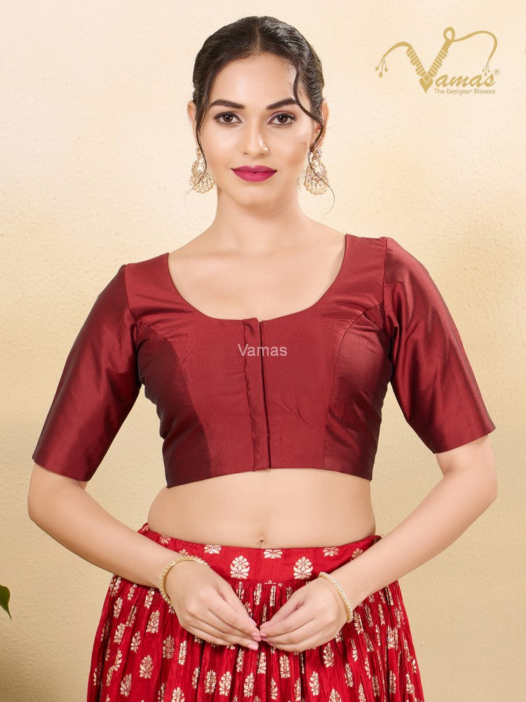 Vamas Women's Brocade Padded Front Open Elbow Sleeves Saree Blouse, This Is A Fully Stitched Ready-Made Padded Saree Blouse With Elbow Sleeves, Size Tip: We recommend buying a size bigger than your actual inner garment size (If your size is 32, then go for 34), 3 Openable Margin Stitches Of Approx. 2 Inches Available On Both Sides For Any Future Alterations, Care Instruction : Dry Clean Only.