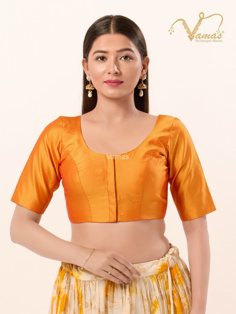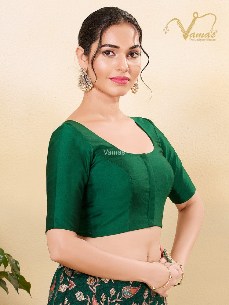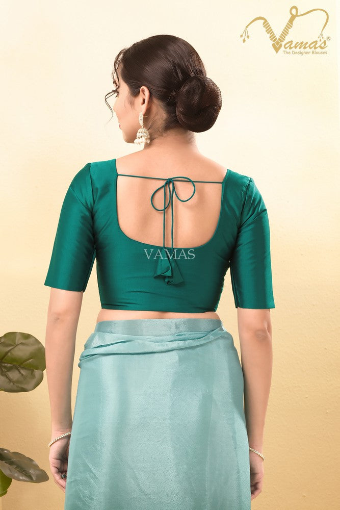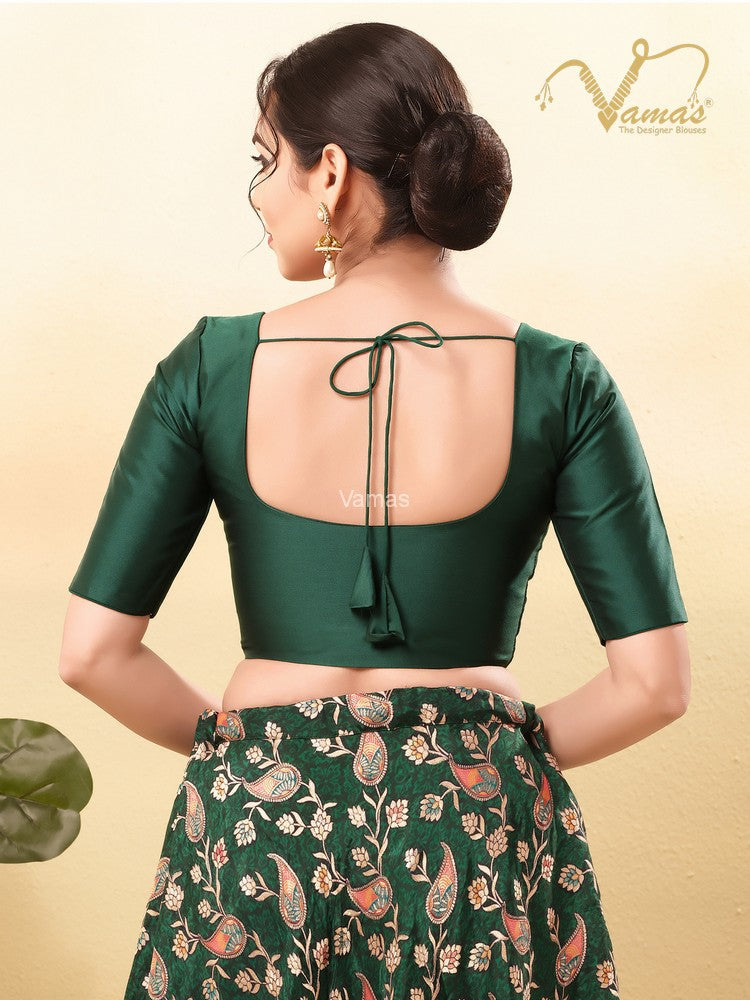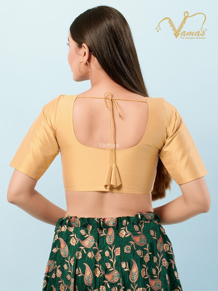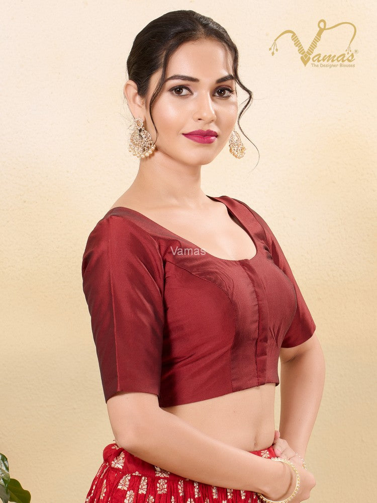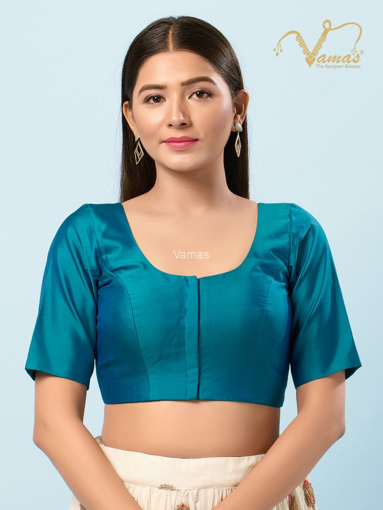 Vamas Women's Brocade Padded Front Open Elbow Sleeves Saree Blouse, This Is A Fully Stitched Ready-Made Padded Saree Blouse With Elbow Sleeves, Size Tip: We recommend buying a size bigger than your actual inner garment size (If your size is 32, then go for 34), 3 Openable Margin Stitches Of Approx. 2 Inches Available On Both Sides For Any Future Alterations, Care Instruction : Dry Clean Only.