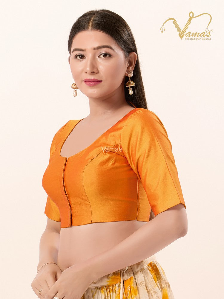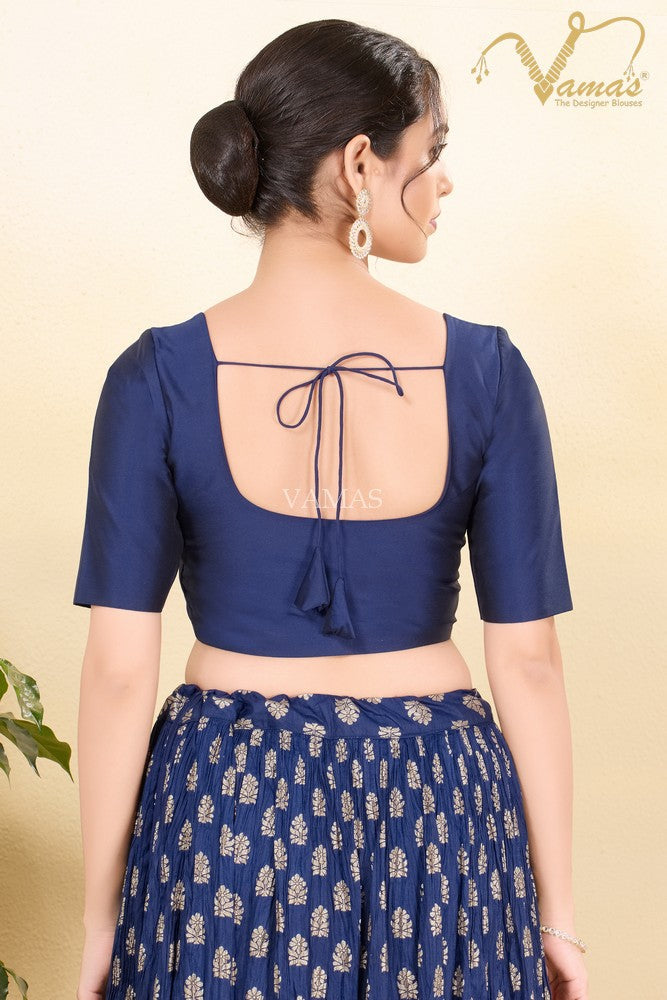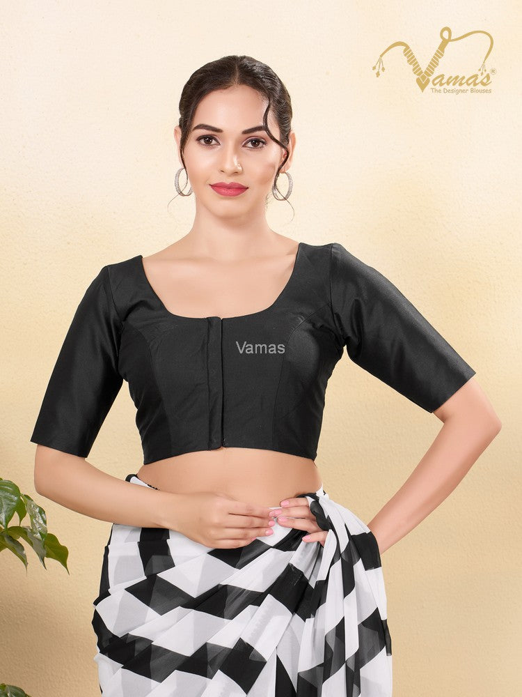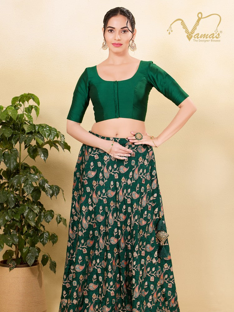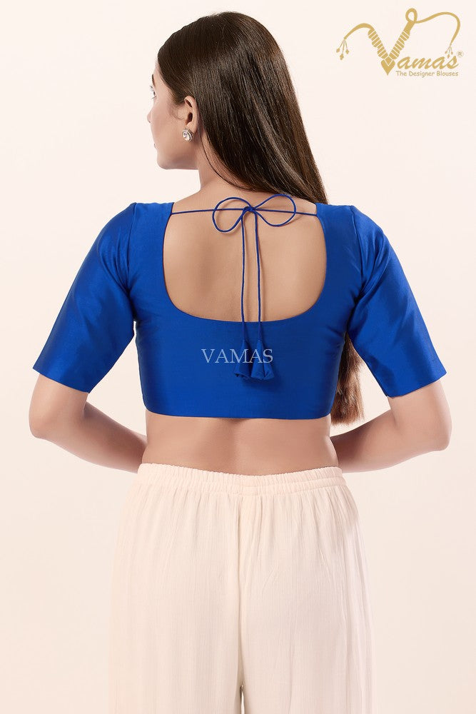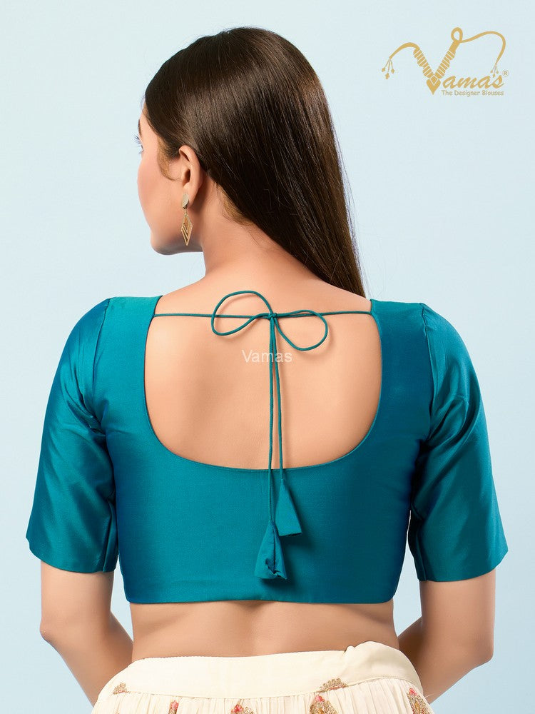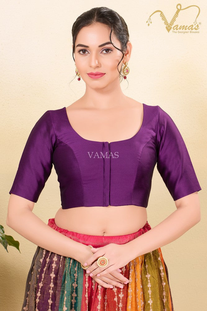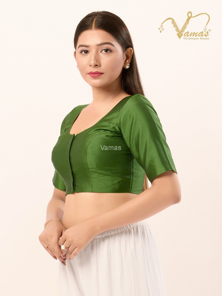 Vamas Women's Brocade Padded Front Open Elbow Sleeves Saree Blouse, This Is A Fully Stitched Ready-Made Padded Saree Blouse With Elbow Sleeves, Size Tip: We recommend buying a size bigger than your actual inner garment size (If your size is 32, then go for 34), 3 Openable Margin Stitches Of Approx. 2 Inches Available On Both Sides For Any Future Alterations, Care Instruction : Dry Clean Only.