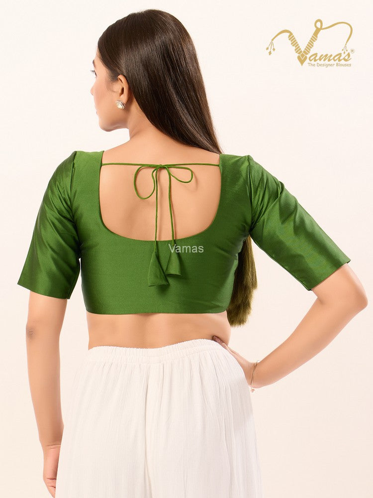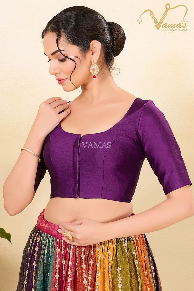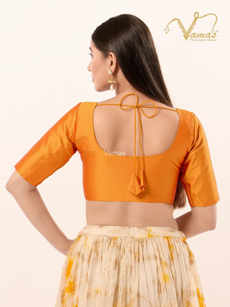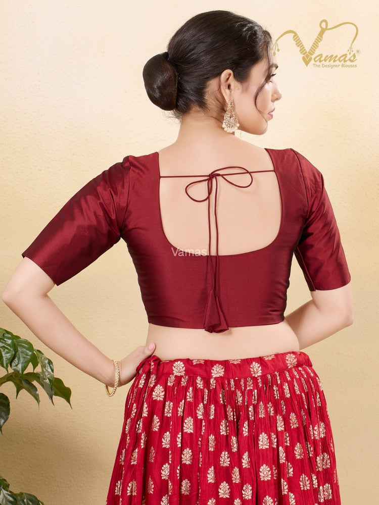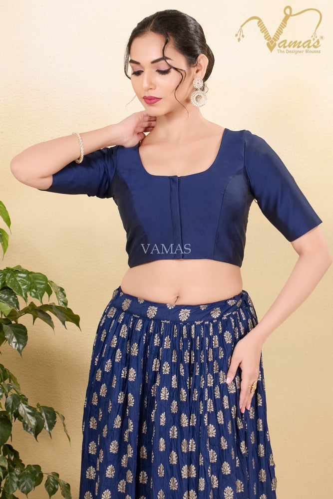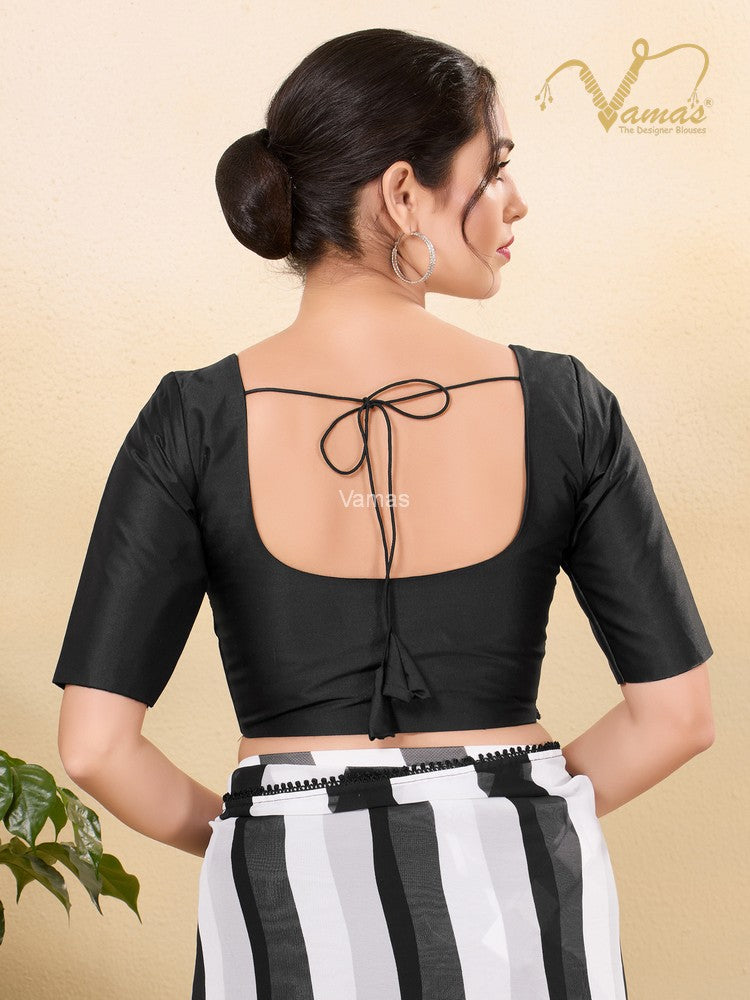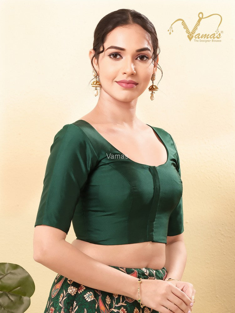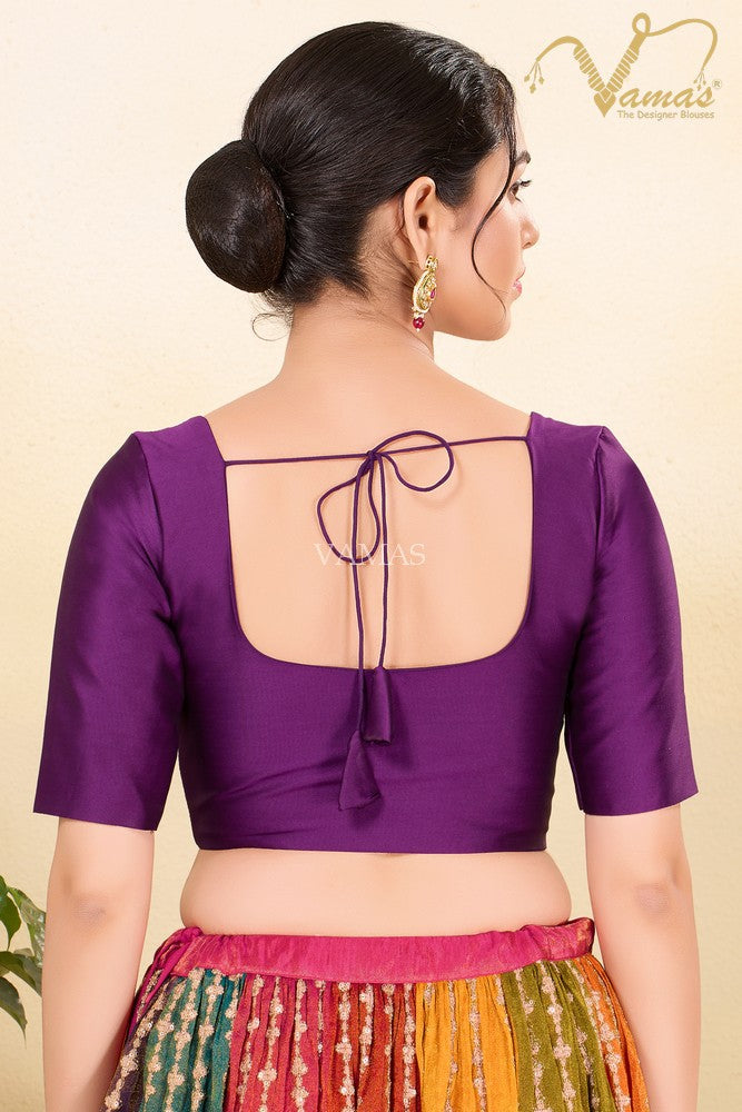 Vamas Women's Brocade Padded Front Open Elbow Sleeves Saree Blouse, This Is A Fully Stitched Ready-Made Padded Saree Blouse With Elbow Sleeves, Size Tip: We recommend buying a size bigger than your actual inner garment size (If your size is 32, then go for 34), 3 Openable Margin Stitches Of Approx. 2 Inches Available On Both Sides For Any Future Alterations, Care Instruction : Dry Clean Only.