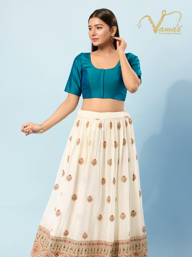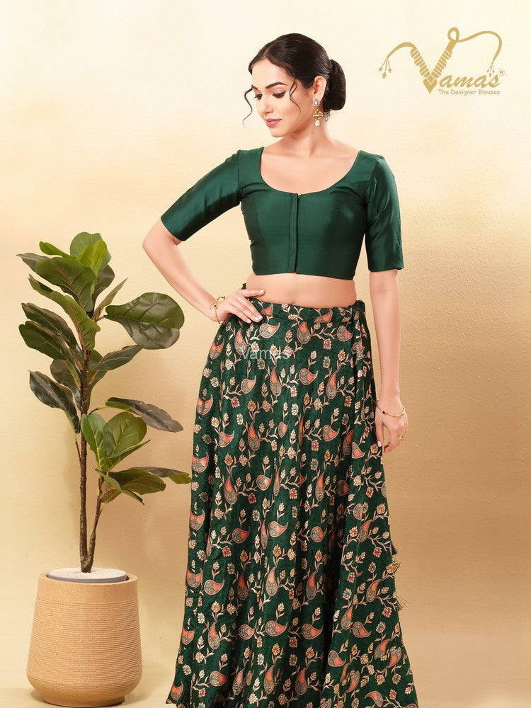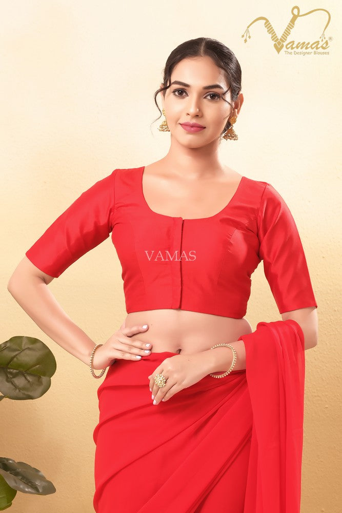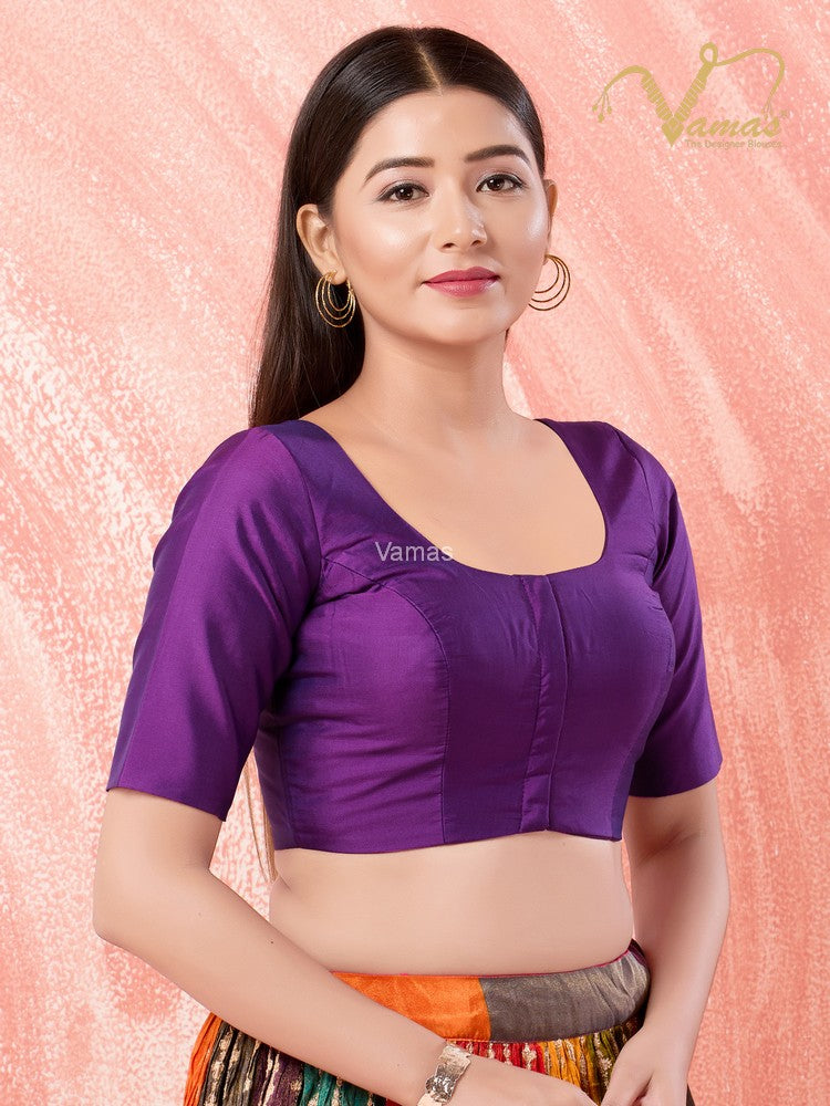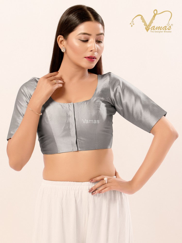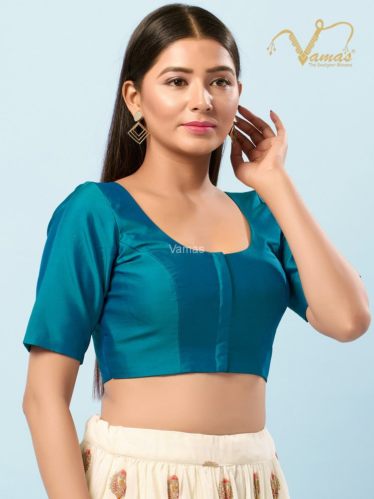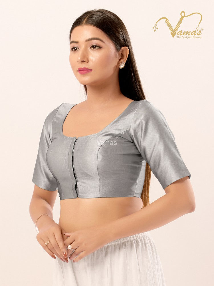 Vamas Women's Brocade Padded Front Open Elbow Sleeves Saree Blouse, This Is A Fully Stitched Ready-Made Padded Saree Blouse With Elbow Sleeves, Size Tip: We recommend buying a size bigger than your actual inner garment size (If your size is 32, then go for 34), 3 Openable Margin Stitches Of Approx. 2 Inches Available On Both Sides For Any Future Alterations, Care Instruction : Dry Clean Only.