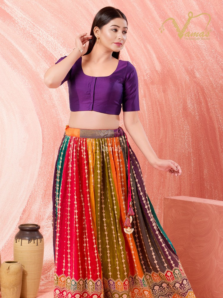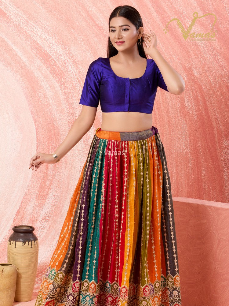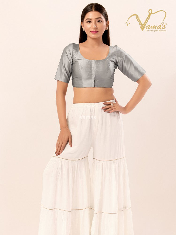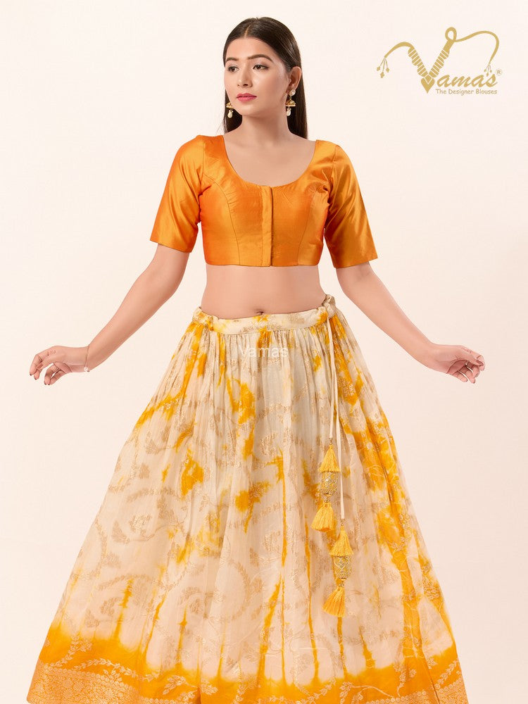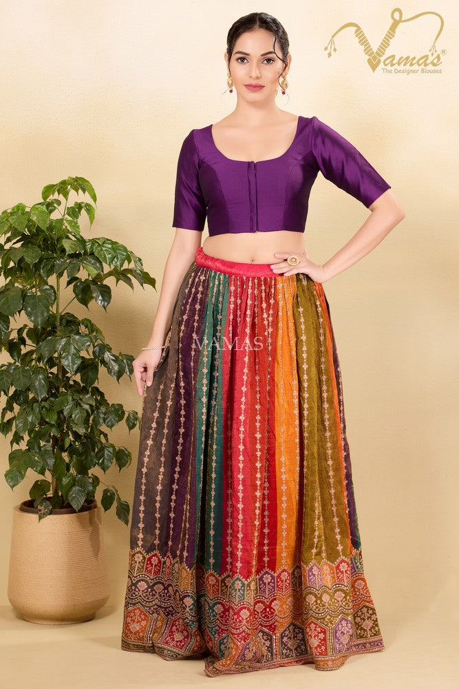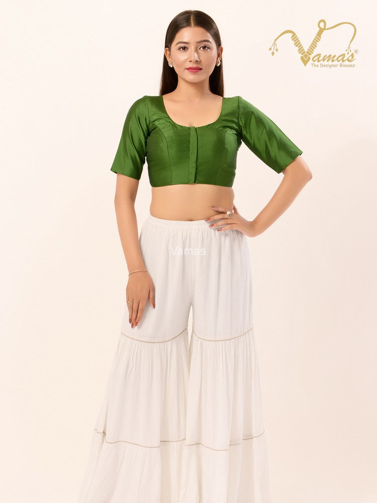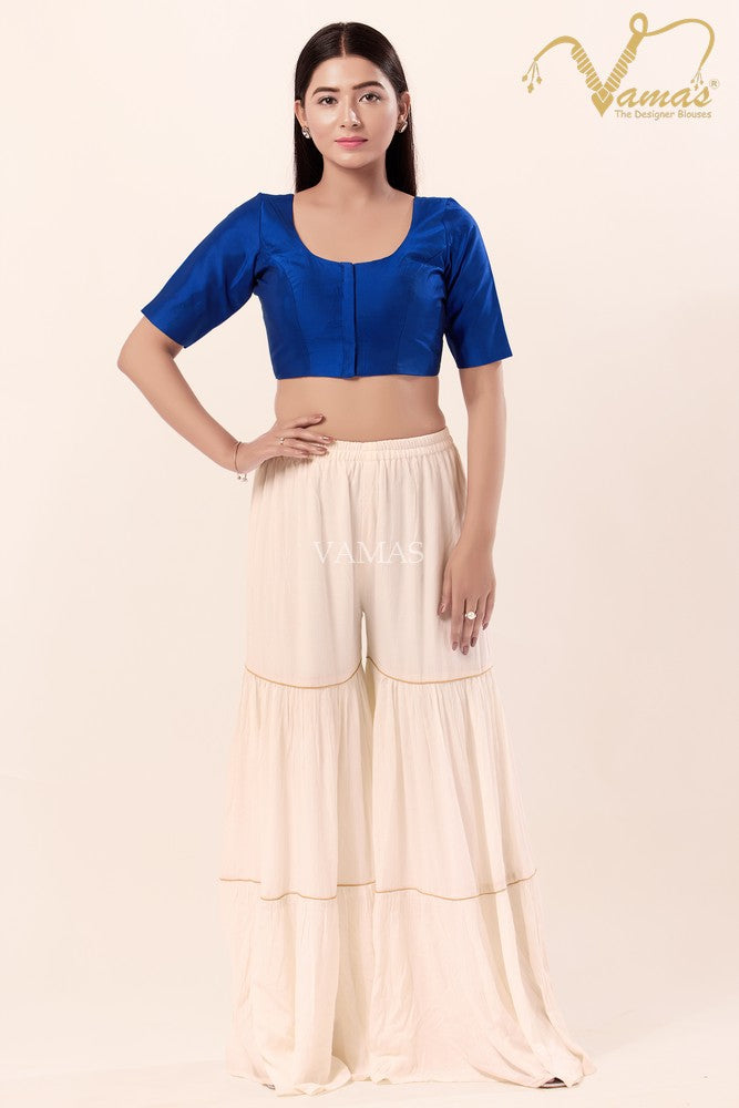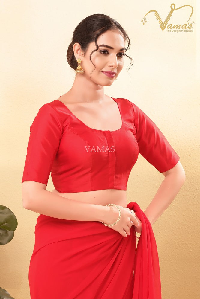 Vamas Women's Brocade Padded Front Open Elbow Sleeves Saree Blouse, This Is A Fully Stitched Ready-Made Padded Saree Blouse With Elbow Sleeves, Size Tip: We recommend buying a size bigger than your actual inner garment size (If your size is 32, then go for 34), 3 Openable Margin Stitches Of Approx. 2 Inches Available On Both Sides For Any Future Alterations, Care Instruction : Dry Clean Only.