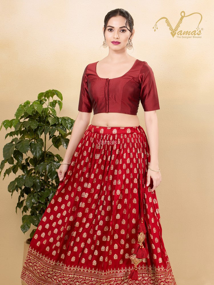 Vamas Women's Brocade Padded Front Open Elbow Sleeves Saree Blouse ( X-1206.ELB )