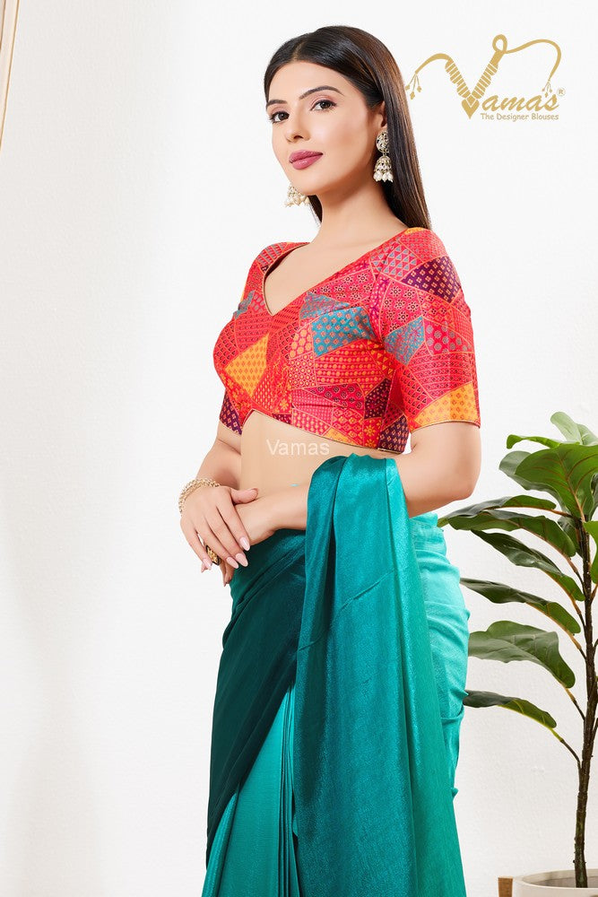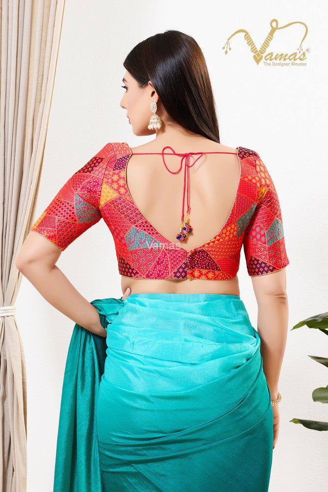 Vamas Women's Brocade Padded Back Open Elbow Sleeves Saree Blouse, This Is A Fully Stitched Ready-Made Padded Saree Blouse With Elbow Sleeves, Size Tip: We recommend buying a size bigger than your actual inner garment size (If your size is 32, then go for 34), 3 Openable Margin Stitches Of Approx. 2 Inches Available On Both Sides For Any Future Alterations, Care Instruction : Dry Clean Only.