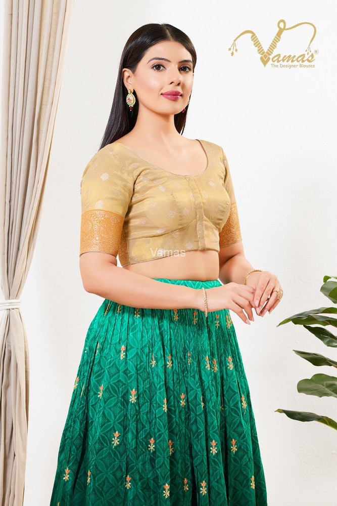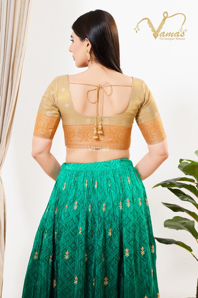 Vamas Women's Tissue Padded Front Open Elbow Sleeves Saree Blouse, This Is A Fully Stitched Ready-Made Padded Saree Blouse With Elbow Sleeves, Size Tip: We recommend buying a size bigger than your actual inner garment size (If your size is 32, then go for 34), 3 Openable Margin Stitches Of Approx. 2 Inches Available On Both Sides For Any Future Alterations, Care Instruction : Dry Clean Only.